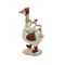 The image depicts a whimsical ceramic figurine of two ducks wearing festive red and white outfits, standing on a snowy base. The playful forms and crisp colours evoke a sense of tradition with a modern twist, making it a standout accent for Christmas decor.