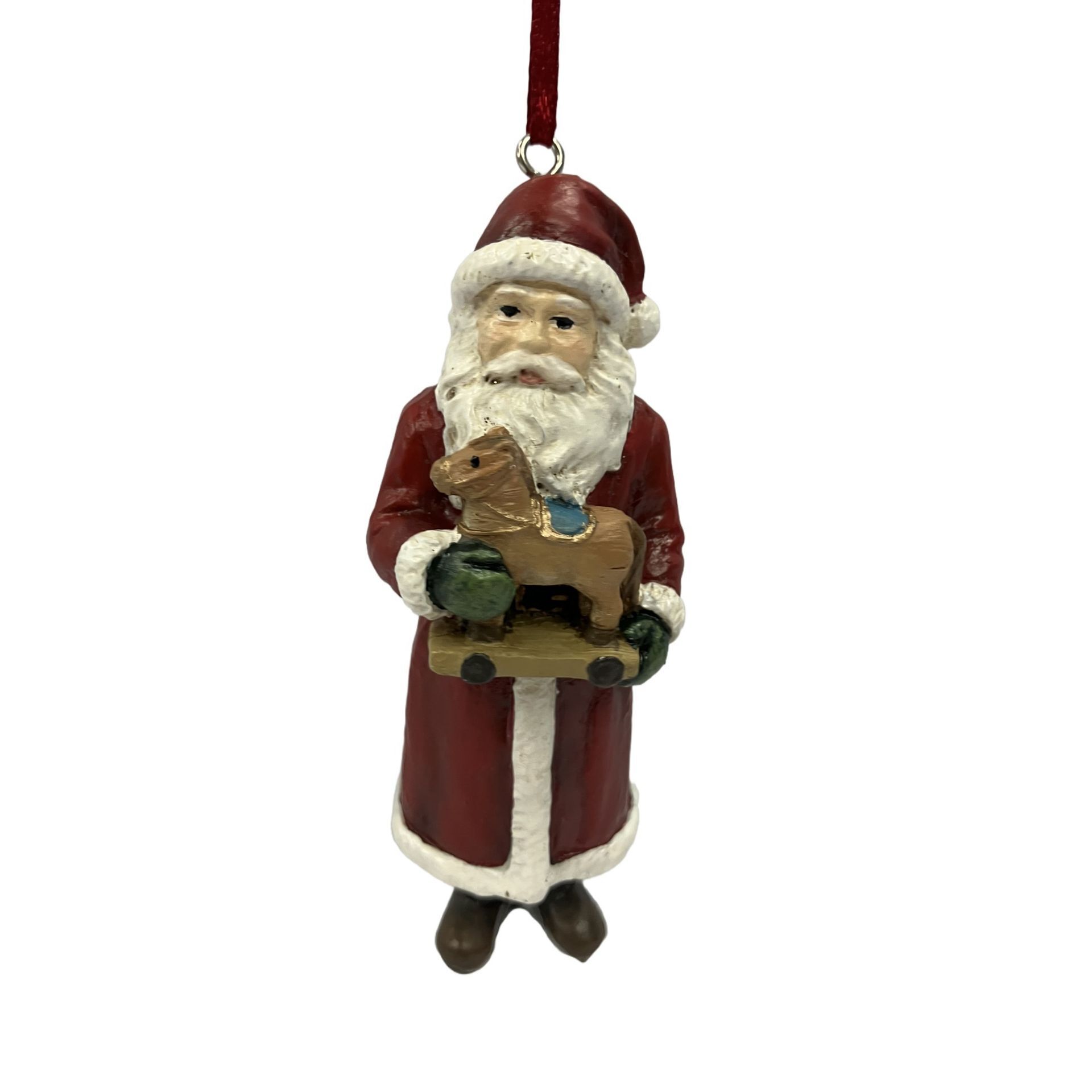 Regal Tidings Resin Santa with Reindeer Hanging Tree Decoration
