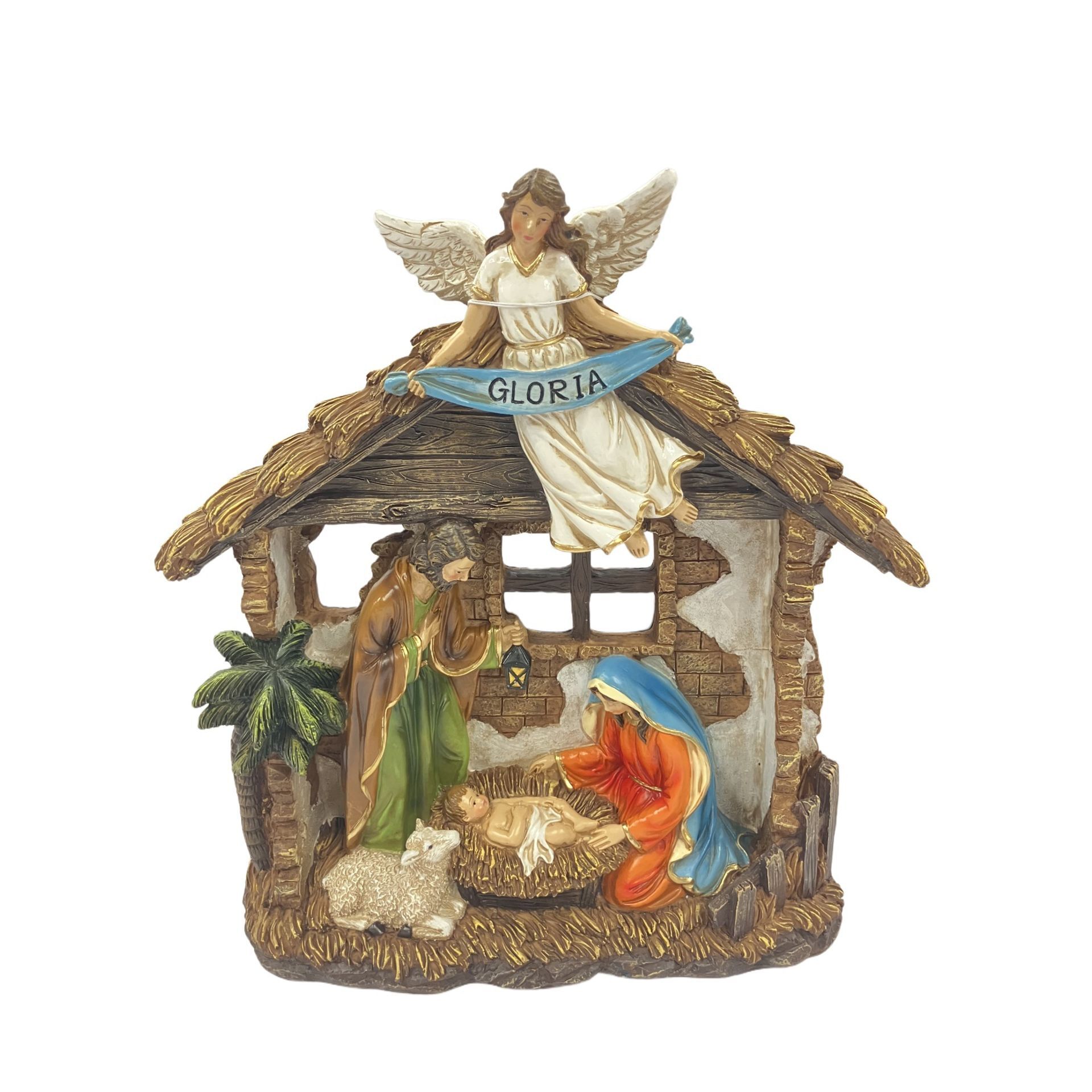 Resin full Nativity Scene with Stable Figurine 28x26cm