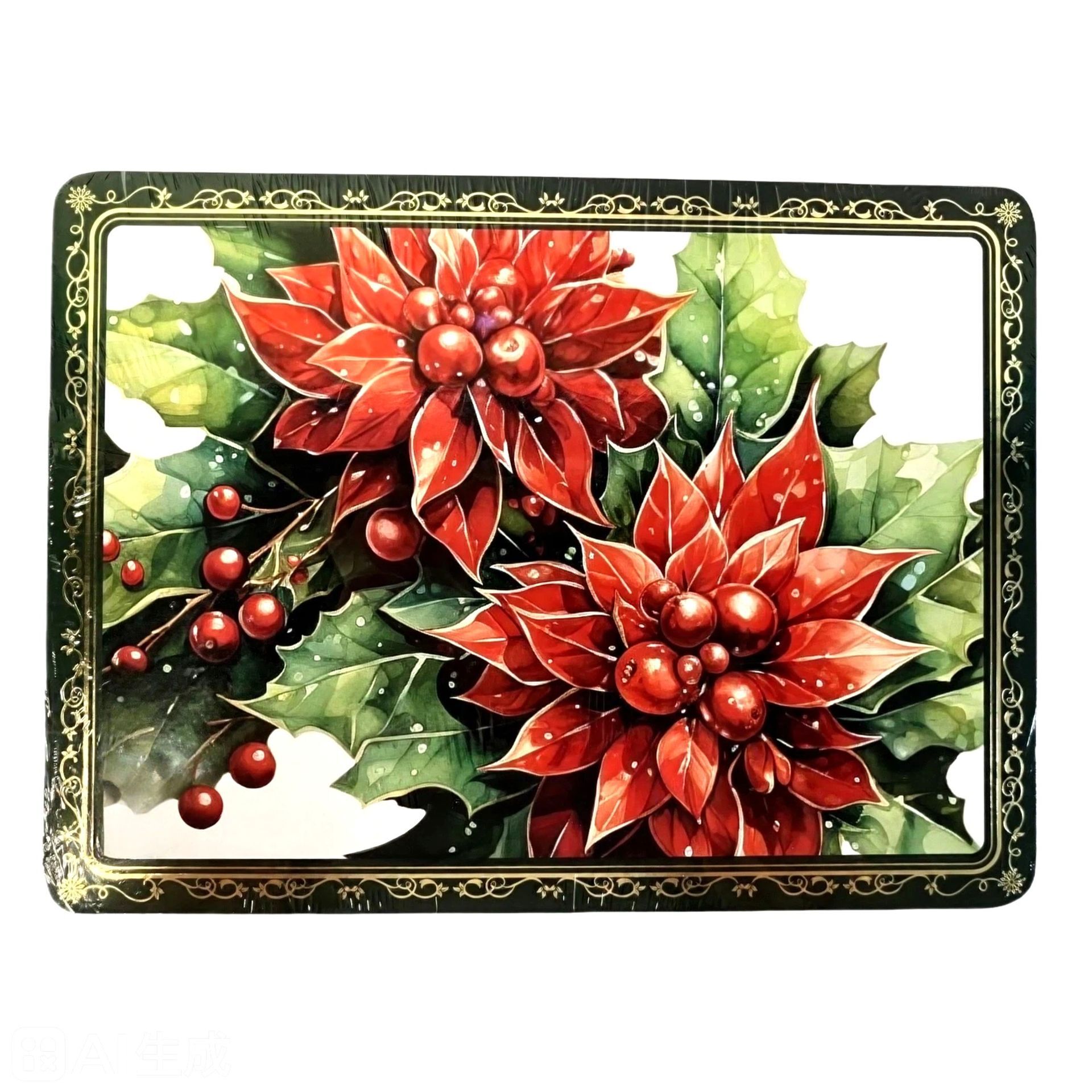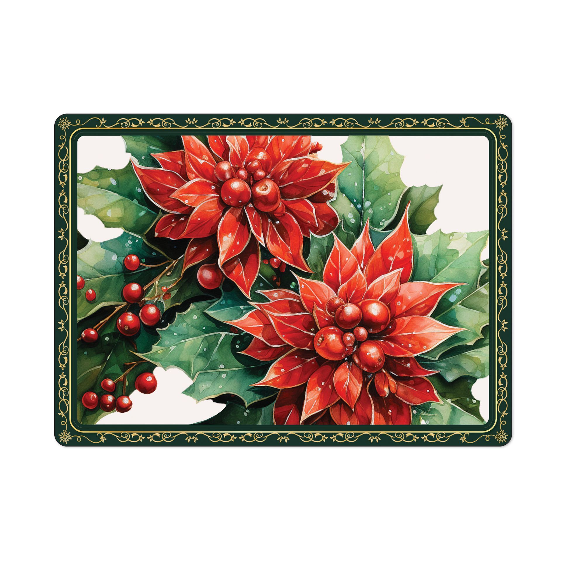 Set Of 4 Poinsettia Wood & Cork Backed Placemats