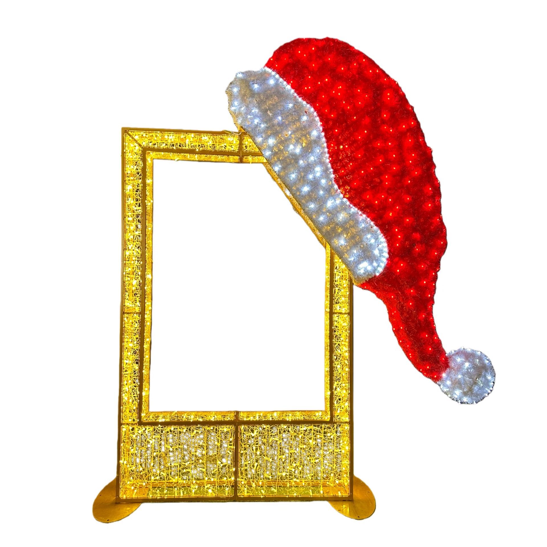 LED 3D Photo Frame with Christmas Hat with 1328 Red, White & Warm String Lights 268 x 33 x 290cm