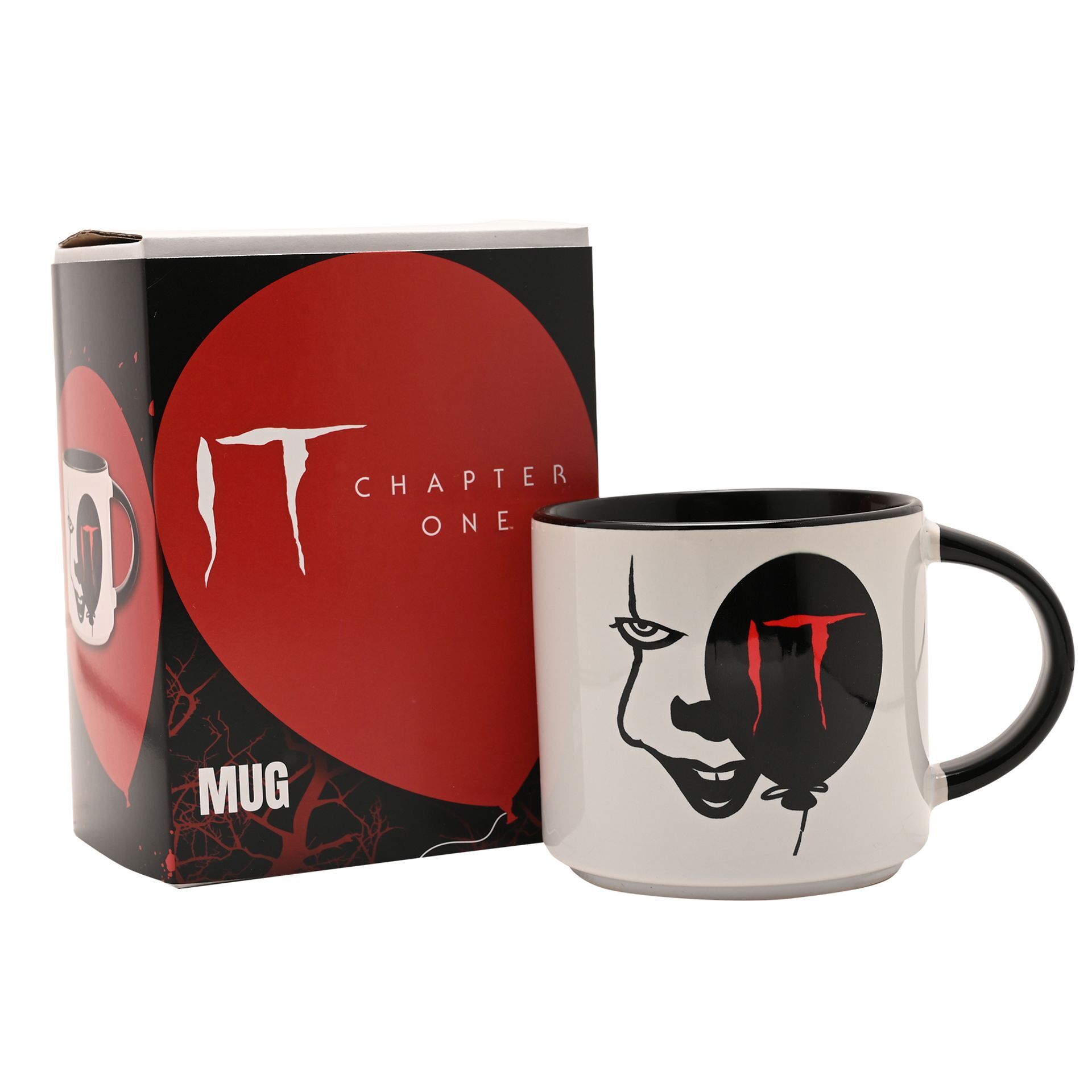 Bring a touch of horror movie nostalgia with the Warner Bros IT Black Mug 14oz - Pennywise Face and Balloon.