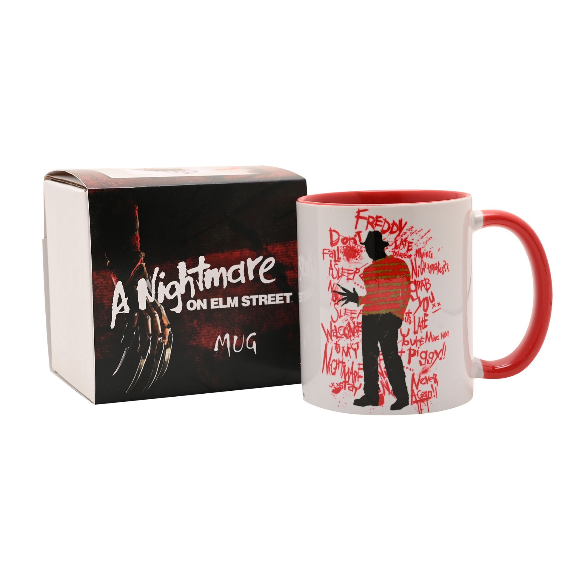 The Warner Bros Nightmare on Elm Street Mug Red Inside 11oz - Freddy Krueger Graffiti is a great addition to any classic film fan's collection.