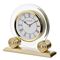 A Glass & Gold Round Mantel Clock from WILLIAM WIDDOP®.