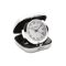 The attractive silver and black clock folds in on itself for simple transportation. It features Roman dial, complementary clock hands, quartz movement and beep alarm.