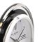 The clock features a beautiful contemporary glass design. It is completed with a modern clock face, minimal Roman numeral quarter dial and slim, sword clock hands.