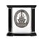 It showcases an elegant, contemporary piano finish alongside intricate craftsmanship. This is furthered by the chrome metal clock face and ‘floating’ Roman dial, which is suspended within glass casing.