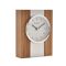 The contrasting wood and metal finishes create a bold statement for the mantelpiece, complete with a striking white clock face and complementary silver bezel. The clock is completed by a stylish baton dial and distinct, black clock hands.