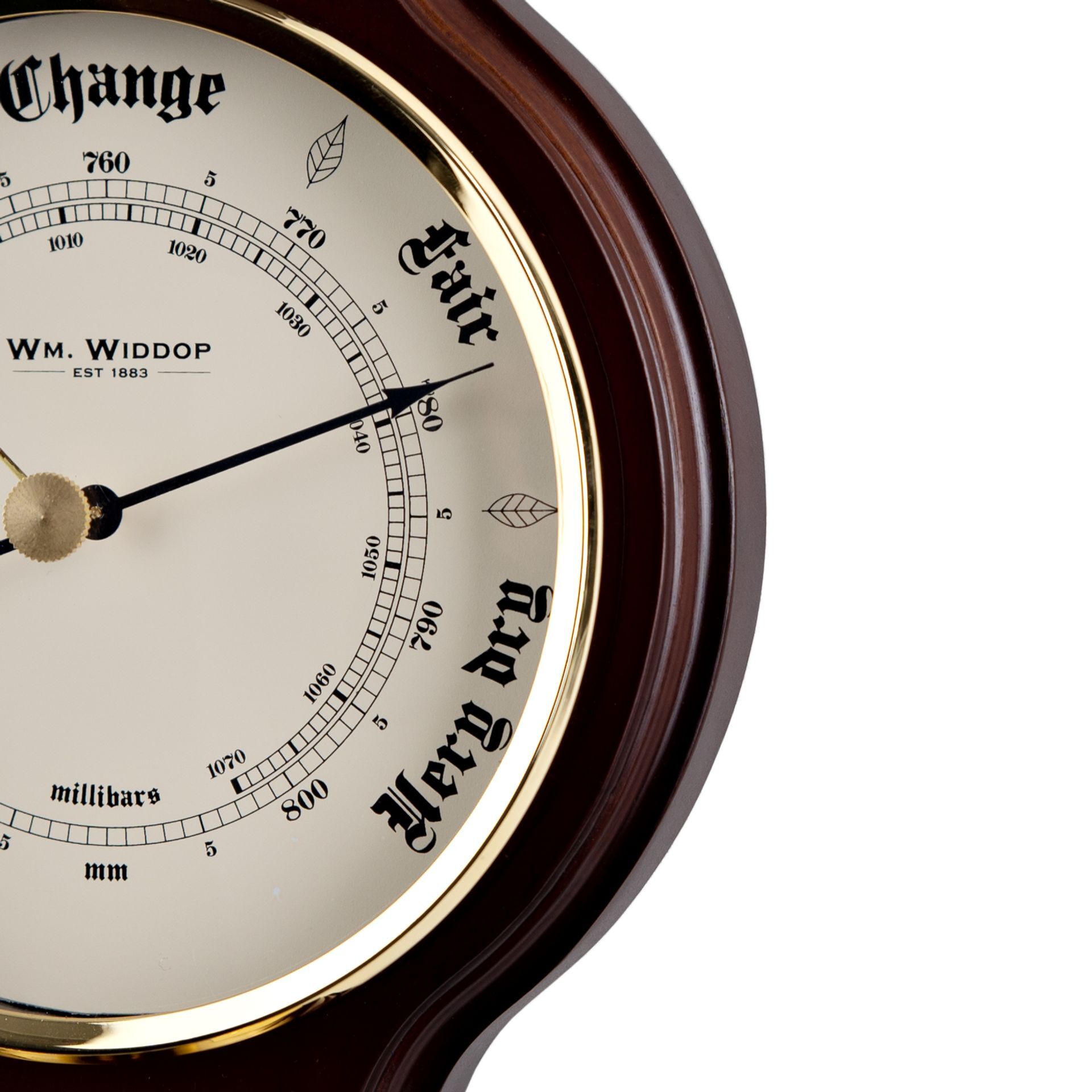A wooden barometer, thermometer and hygrometer from WILLIAM WIDDOP®.