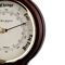 The matt, mahogany finish of this weather station is enhanced by its intricate carved eave design. Below the thermometer sits both an accurate barometer and hygrometer gauge, each surrounded by a gold metal bezel.