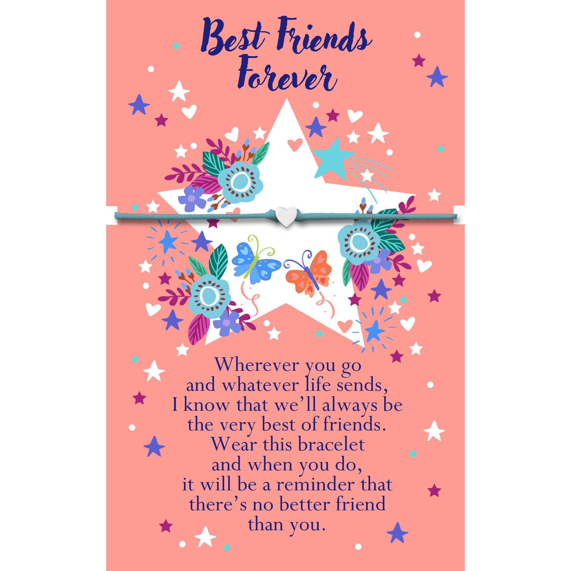 A beautifully presented keepsake designed to celebrate the strength and joy of best friends forever. This Heartwarmers jewellery piece is created to honour a friendship built on trust, laughter and shared memories. Presented as a delicate bracelet on a thoughtfully designed verse card, this piece features a heartfelt message about staying connected no matter where life leads. It feels personal and considered, making it a meaningful reminder of a friendship that stands the test of time. Part of the much-loved Heartwarmers collection from WPL Gifts, this jewellery piece pairs thoughtful design with lasting sentiment, making it a treasured keepsake to celebrate lifelong friendships and special bonds.