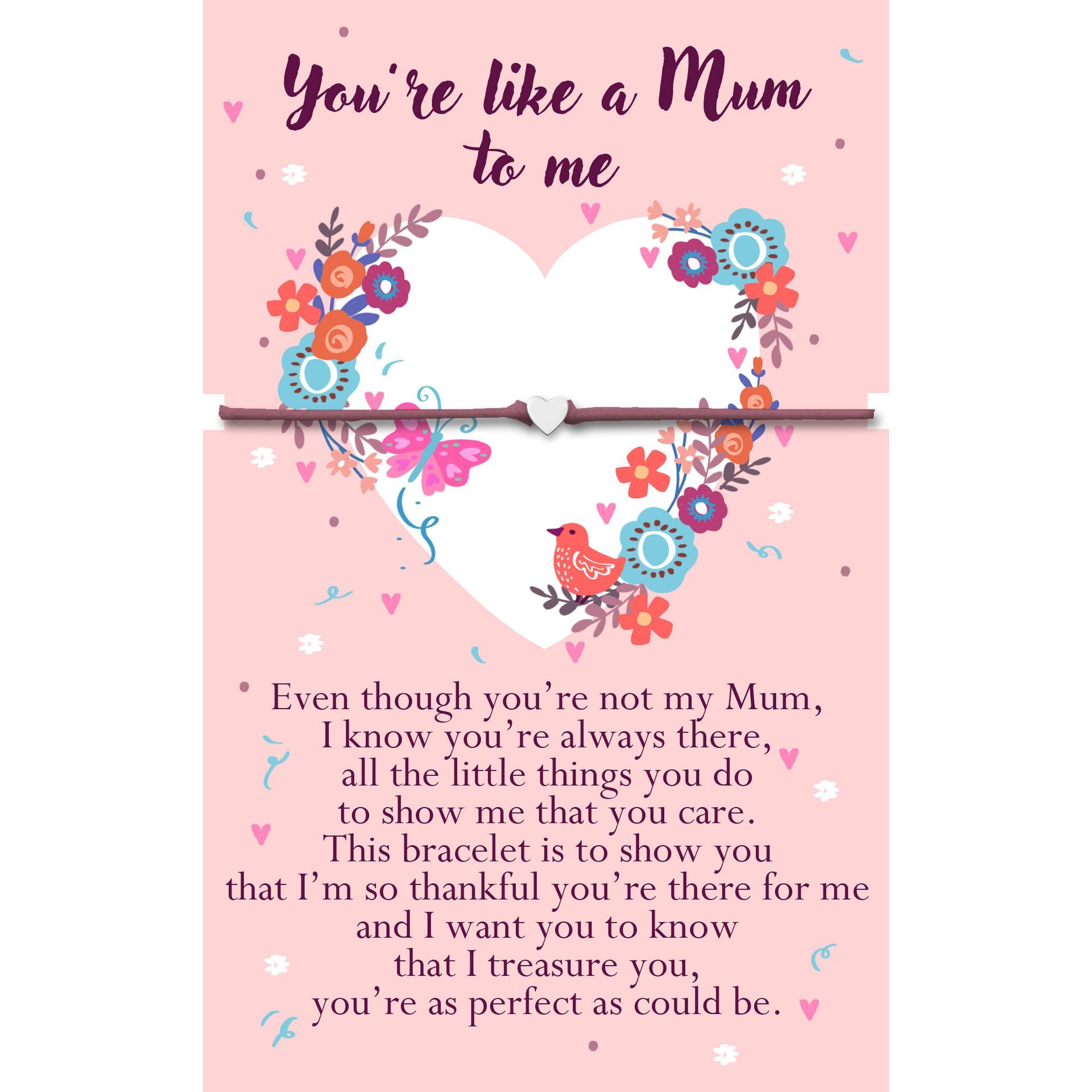 A beautifully presented keepsake designed to celebrate someone who has shown love, care and guidance like a mum. This Heartwarmers jewellery piece is created to express deep appreciation and heartfelt sentiment in a gentle, meaningful way. Presented as a delicate bracelet on a thoughtfully designed verse card, this piece features a touching message recognising support, kindness and the special role someone has played. It feels personal and considered, making it a meaningful reminder of gratitude and the bond you share. Part of the much-loved Heartwarmers collection from WPL Gifts, this jewellery piece pairs thoughtful design with lasting sentiment, making it a treasured keepsake and a heartfelt gift for someone who means so much.