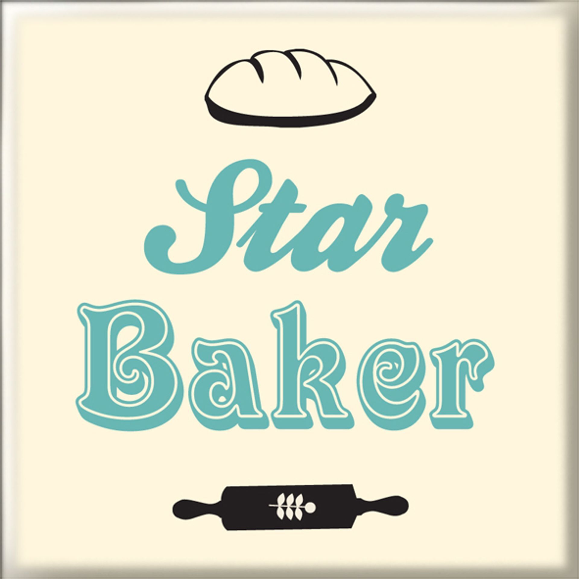 A charming novelty magnet featuring the phrase “Star Baker”, accented with classic baking illustrations including a loaf of bread and a rolling pin. The soft, retro-inspired colour palette and playful typography give it a warm, homely feel that’s ideal for adding character to any kitchen space.