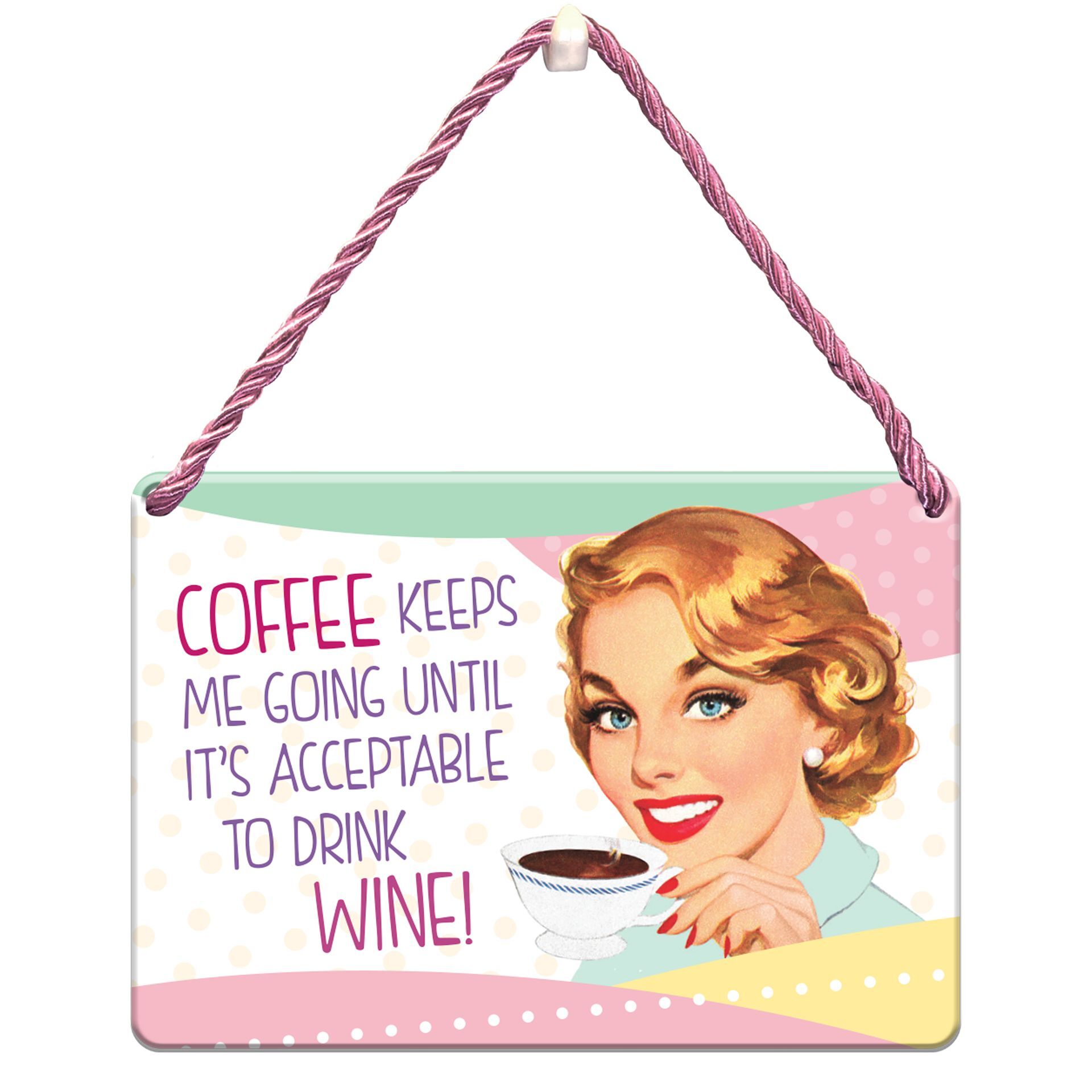 The She Who Must Be Obeyed Tin Plaque Coffee Keeps Me Going Until... is a charmingly witty gift featuring a vintage-inspired design that brings a touch of humour to any kitchen or office. The image depicts a retro-style sign with a smiling woman holding a cup of coffee, accompanied by the text "Coffee keeps me going until it's acceptable to drink wine!" Crafted from tin, this sturdy plaque is built to last and designed to delight. Explore more from this delightful collection, filled with unique gifts to celebrate life's special moments and bring a smile to friends and family.