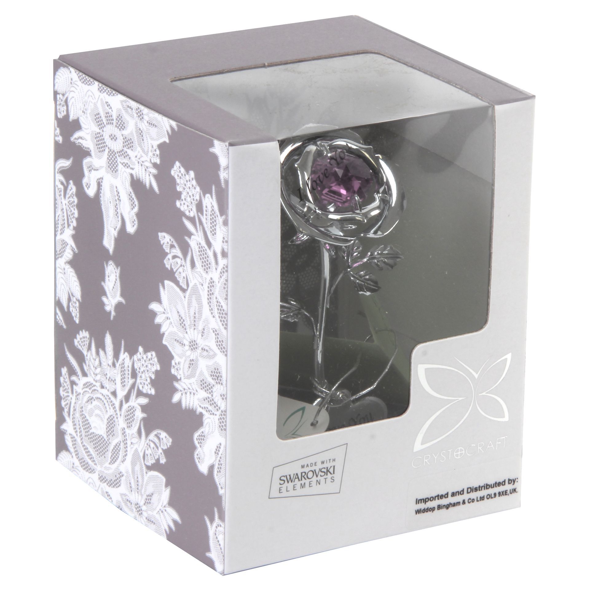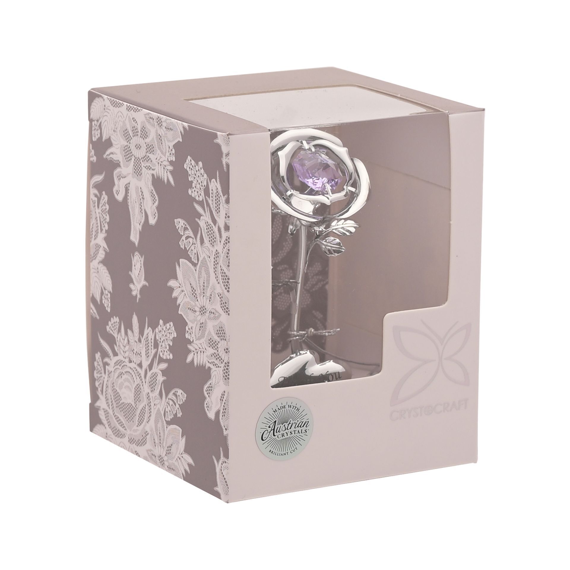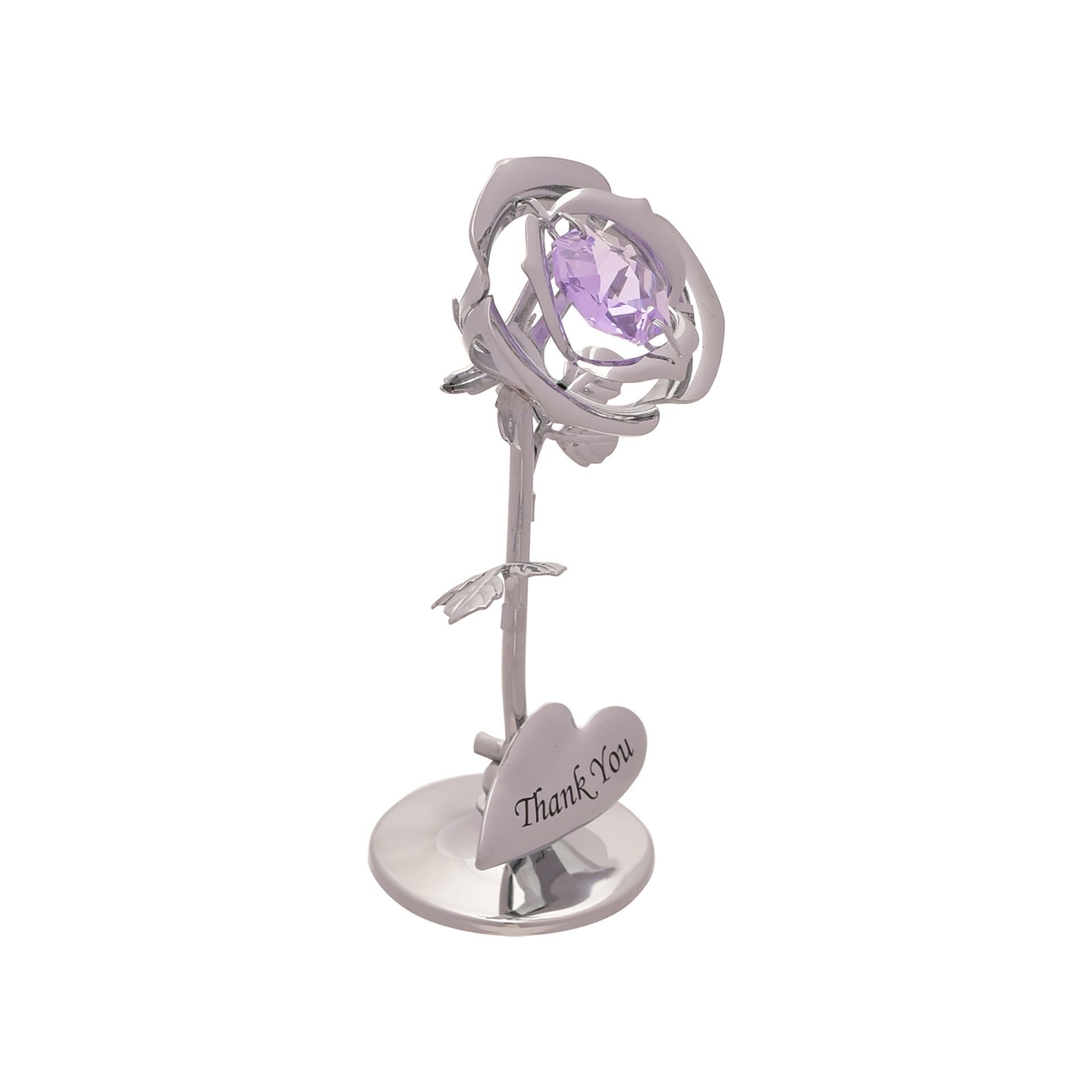 A beautiful chrome plated Crystocraft rose ornament with a 'Thank You' plaque. This beautiful piece is embellished with a large, soft lilac Austrian Crystals to make a stunning and eye catching token of gratitude.