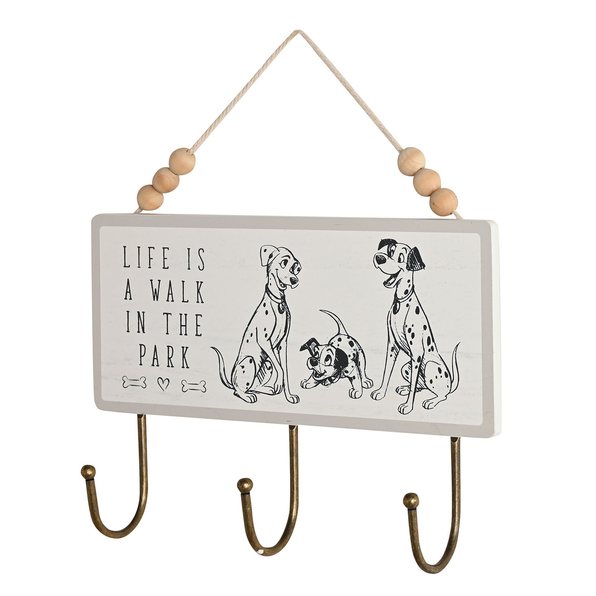 Add Disney magic to your home with the Disney Cats & Dogs Lead Holder Plaque. Ideal for dog lovers, this wooden sign features three cartoon pups and the phrase "LIFE IS A WALK IN THE PARK." With a rustic design, it includes a rope hanger with wooden beads for easy display and three metal hooks for hanging leads. Perfect for your entryway or mudroom, it keeps you organized and adds charm. Explore more Disney-inspired home accessories in our collection.