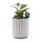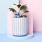 The ceramic planter features pastel pink and blue stripes with a 3D blue Stitch figurine nestled among faux greenery, creating a fun decorative piece that works on desks, shelves, or windowsills. Its compact, low-maintenance design makes it an easy pick-up gift.