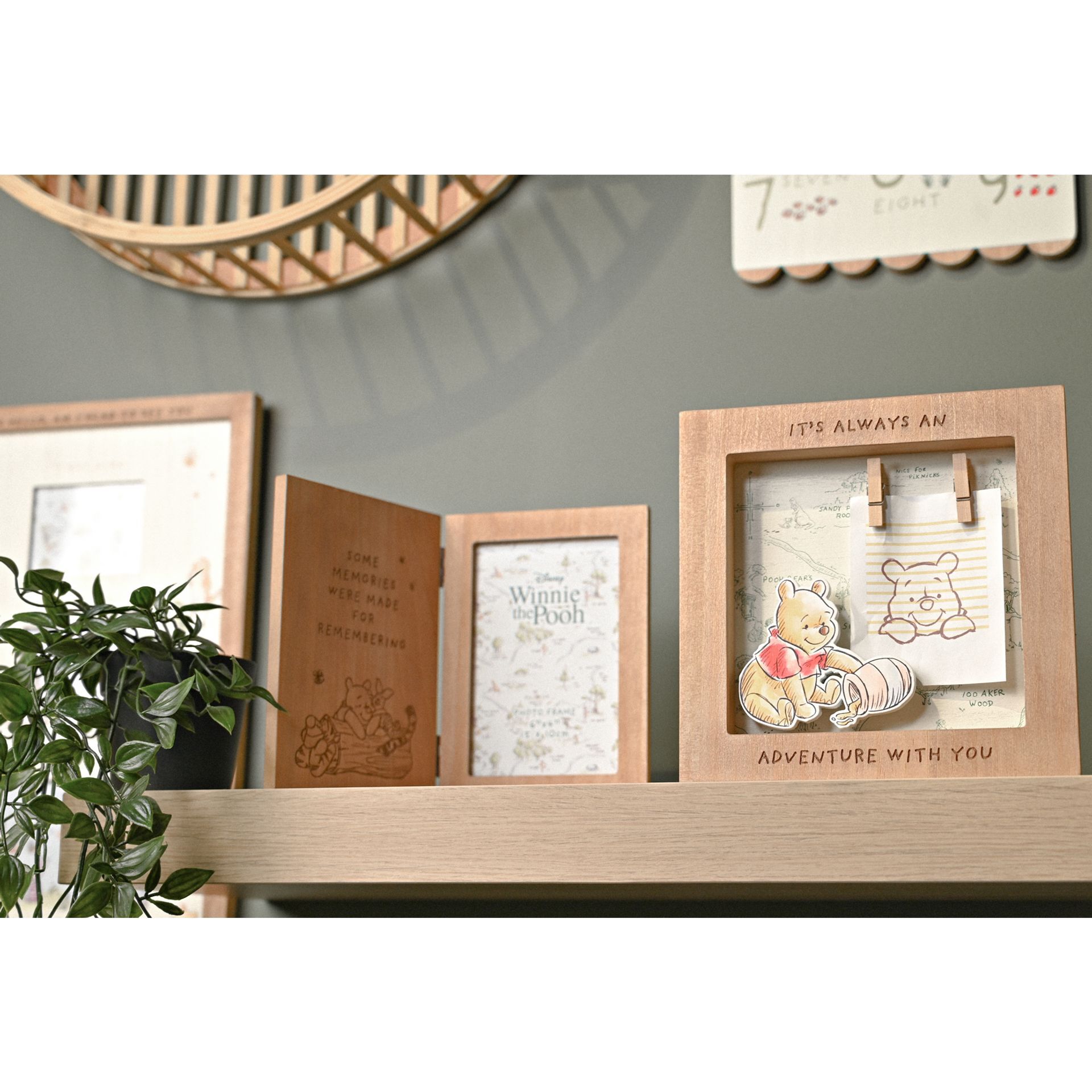 Embark on a whimsical adventure with Winnie the Pooh and friends in this delightful wooden photo frame from DISNEY®. Featuring an enchanting cartoon illustration, a charming map, this frame brings the magic of the Hundred Acre Wood to life. • Wooden frame with a captivating Winnie the Pooh design • Includes cute clothespins for hanging a photo Discover more wonderful Winnie the Pooh gifts to share the joy of this timeless tale with your loved ones.