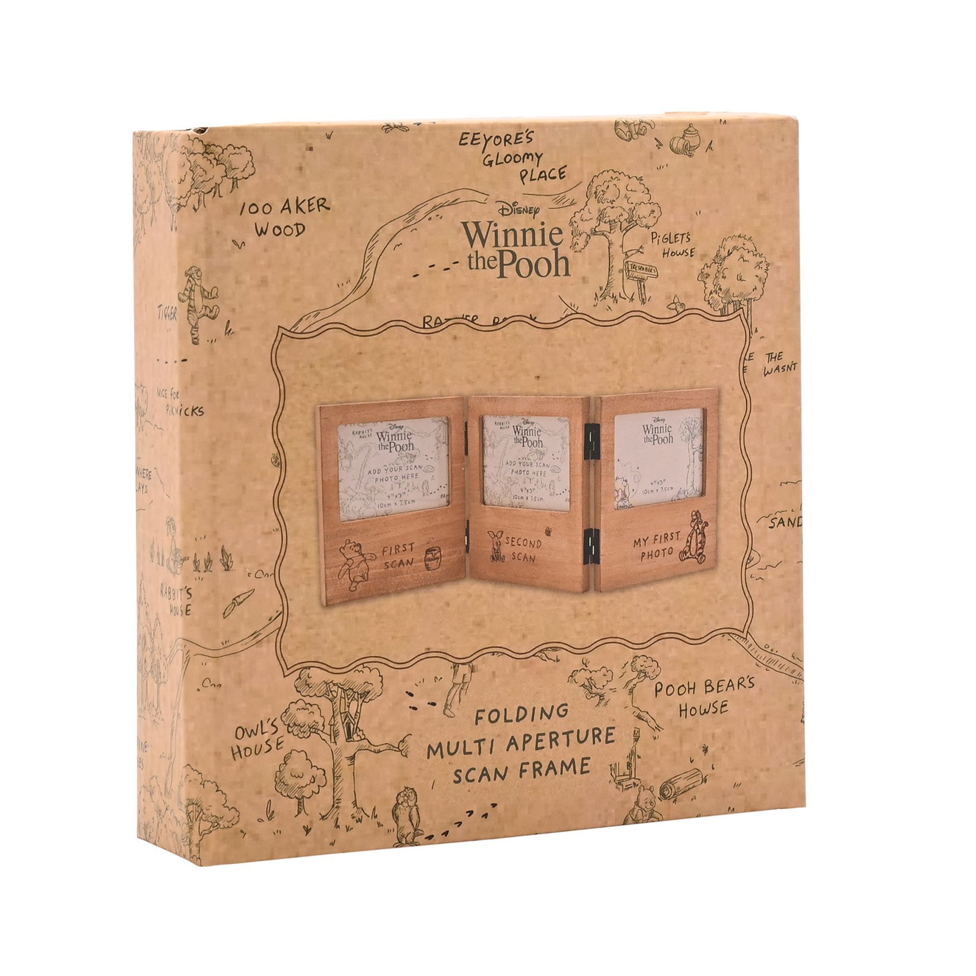Featuring delightful illustrations of everyone's favourite bear and friends, this wooden tri-fold photo frame is the perfect way to showcase your baby's first precious photos.