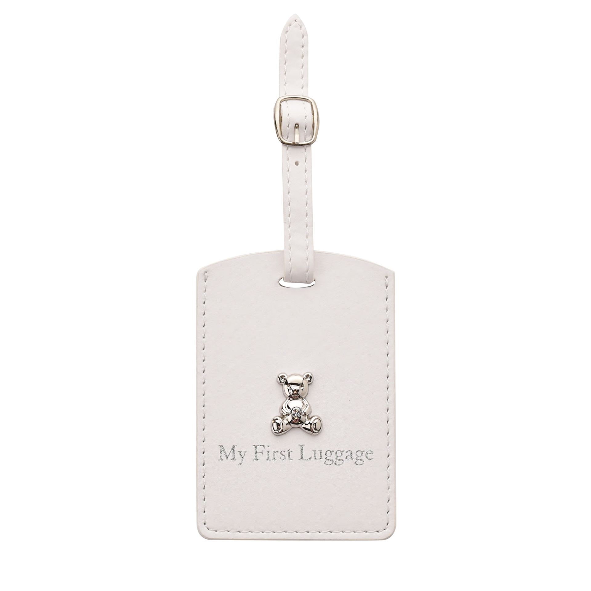 The leatherette set consists of a passport holder and matching luggage tag with soft, white colouring. Each item features a solid silver metal teddy bear for decoration, complete with ‘My Luggage’ and ‘My First Passport’ in complementary silver foil lettering.