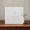The grey fabric provides a smooth finish to the album, enhanced by silver detailing, including ‘Bless This Child’ wording and metal cross adornment. It is sealed with a complementary ribbon and features an envelope on the inside front cover, along with a dedication front page.