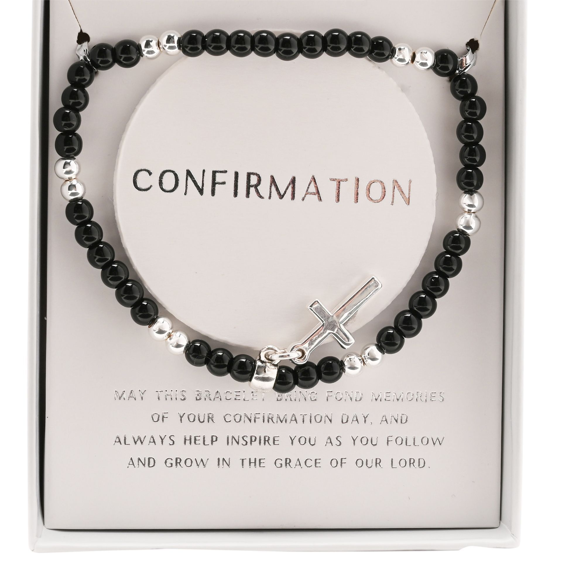 The Faith & Hope Beaded Bracelet Cross – Communion adds a clean, modern touch to a classic design, featuring smooth beads and a simple cross charm.