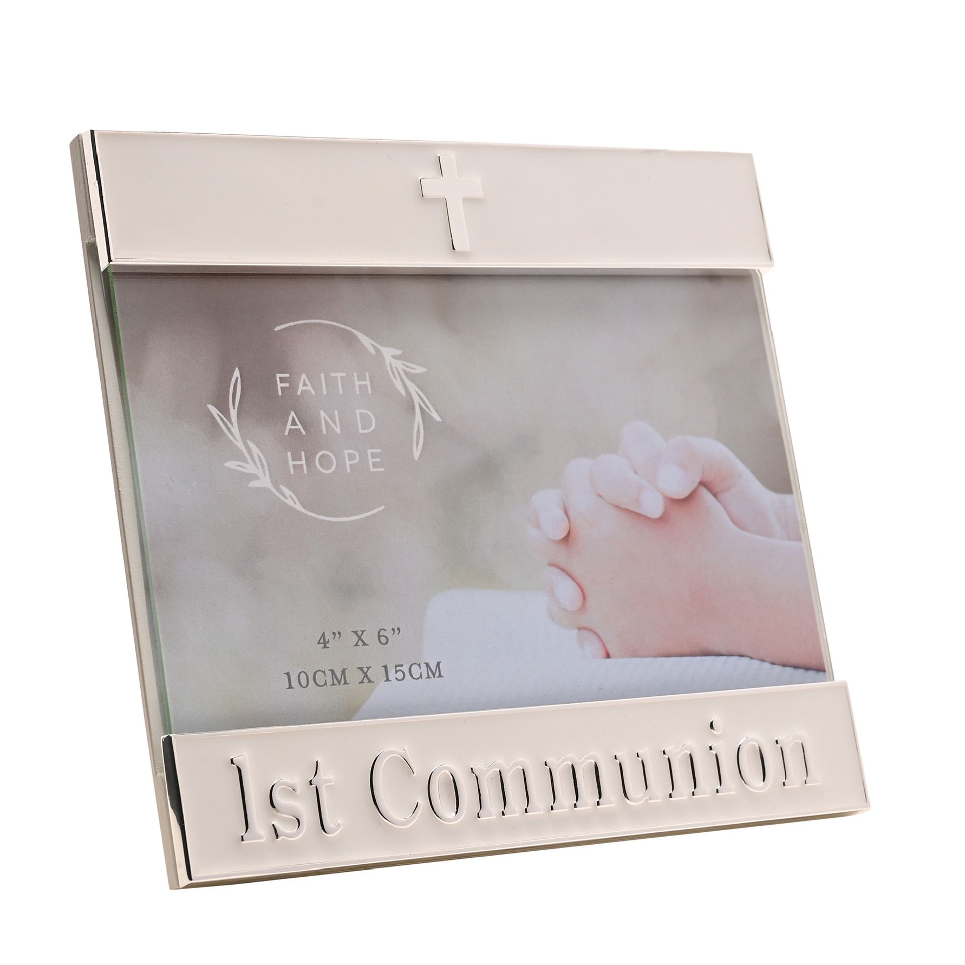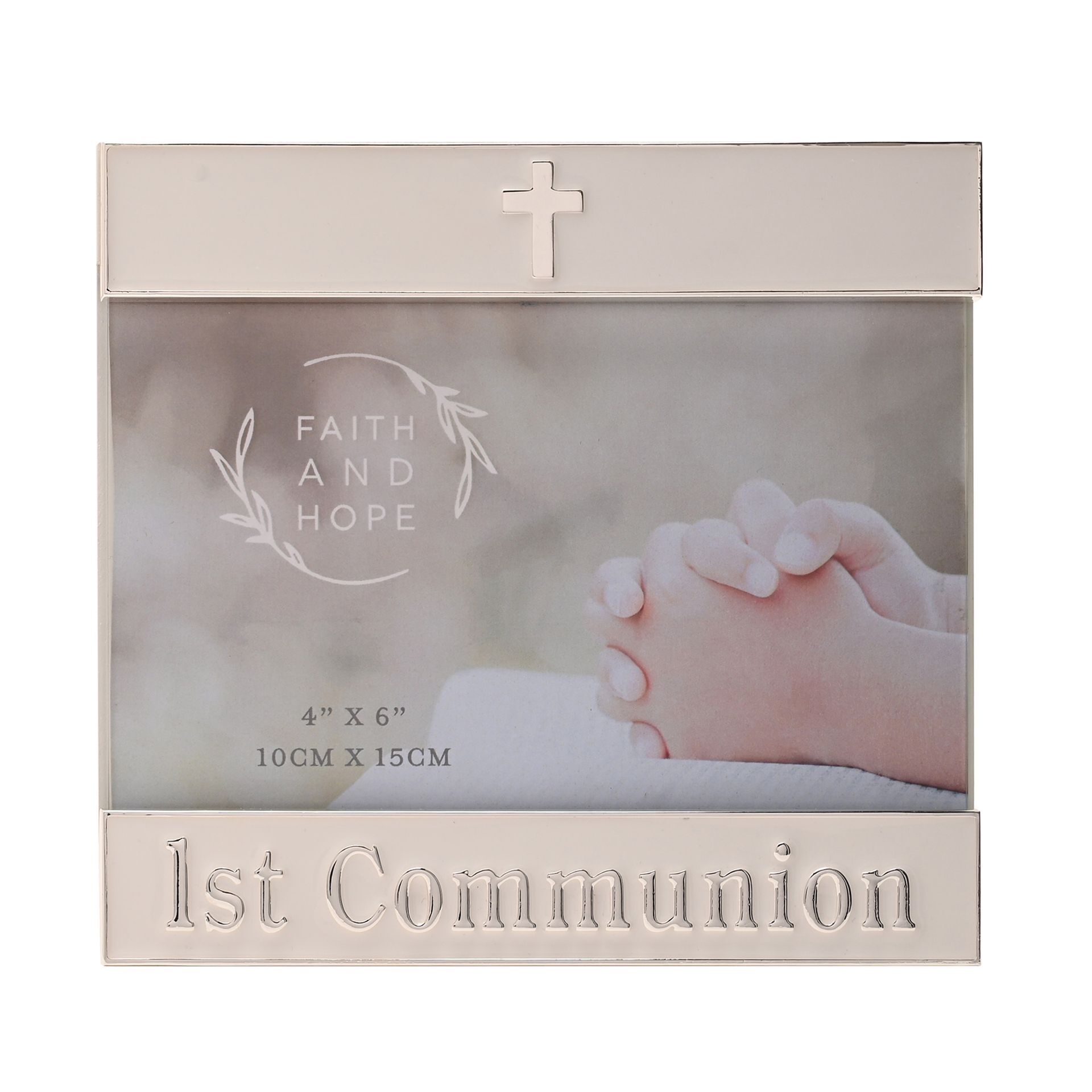 The Faith & Hope Enamel & Silver Frame – 1st Communion presents a fresh, minimal design for milestone moments.