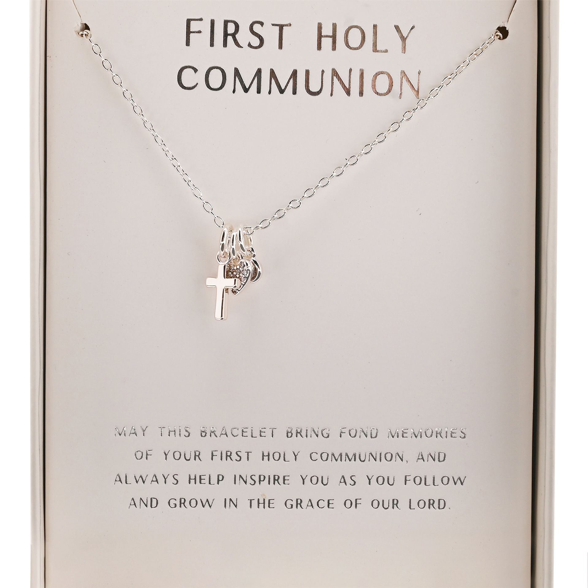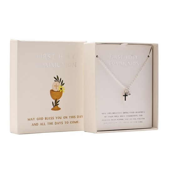The Faith & Hope Necklace - Communion showcases a cross pendant with a message-led card for a modern take on a classic sacramental gift.