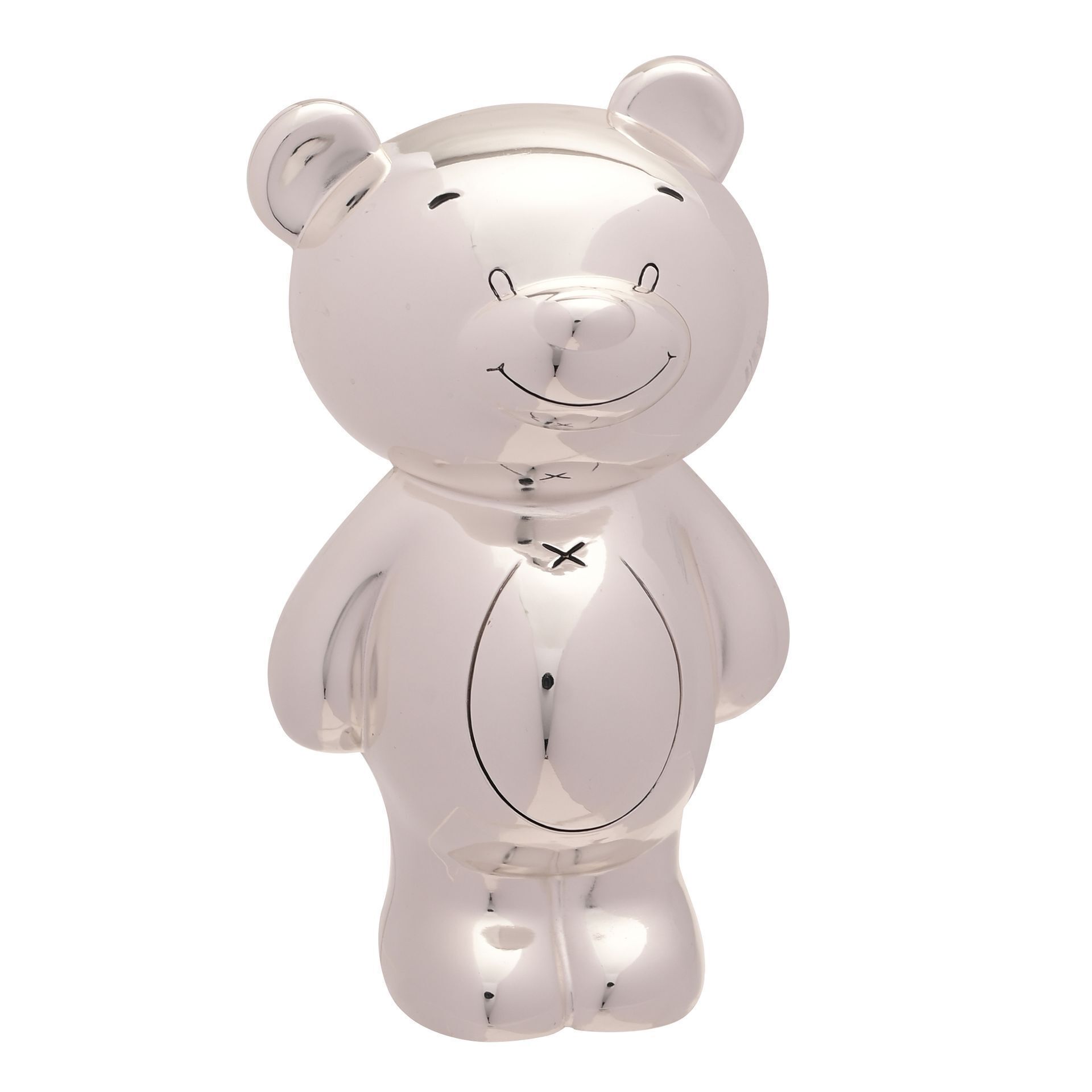 An irresistibly adorable silver-plated teddy bear baby's 1st money bank - soothing, gentle and calm - perfect giftware for a precious new arrival.