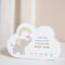Crafted from ceramic, the cloud-shaped plaque features a cute elephant and a colourful rainbow. The message reads: "Such a big miracle, in a beautiful little BABY GIRL" making it a lovely gift for new parents. Display it on a mantel or shelf to bring love to any nursery or home.