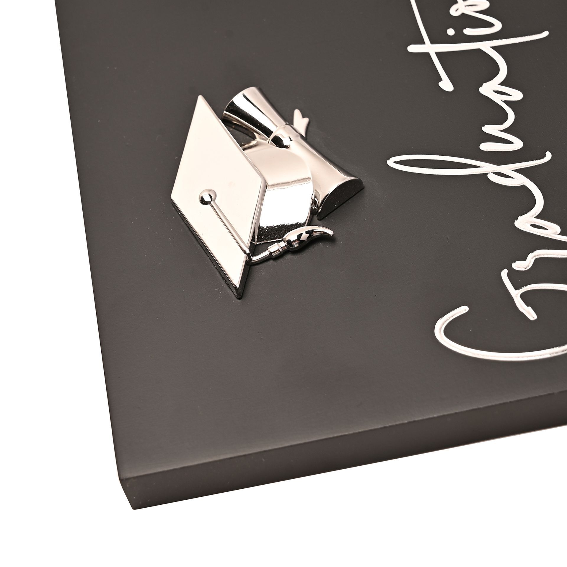 This black frame is embellished with a petite, silver coloured graduation cap and scroll. It is accompanied with attractive wording which features a life-affirming message.