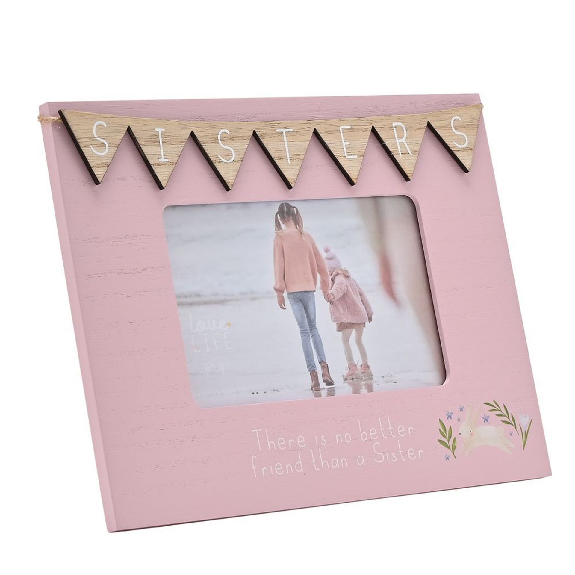 A 6” x 4” Frame with Bunting – Sisters, by Love Life from CELEBRATIONS®. An ideal addition to any home or store, this MDF printed item encapsulates the warmth and sentimentality that defines our brand. The heartfelt message to sisters, below the landscape aperture reads, ‘There is no better friend than a Sister.’ Frame comes in light pink which complements the illustration of a white Easter Bunny. This frame is part of a wider sentiment photo frame collection that celebrates life.