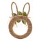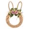 A woven wreath with a bunny-ears silhouette, adorned with faux green leaves and pink floral accents. Ready to hang on doors, windows, aisles, or POS displays.