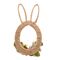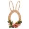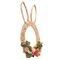 A woven wreath with a bunny-ears silhouette, adorned with faux green leaves and pink floral accents. Ready to hang on doors, windows, aisles, or POS displays.