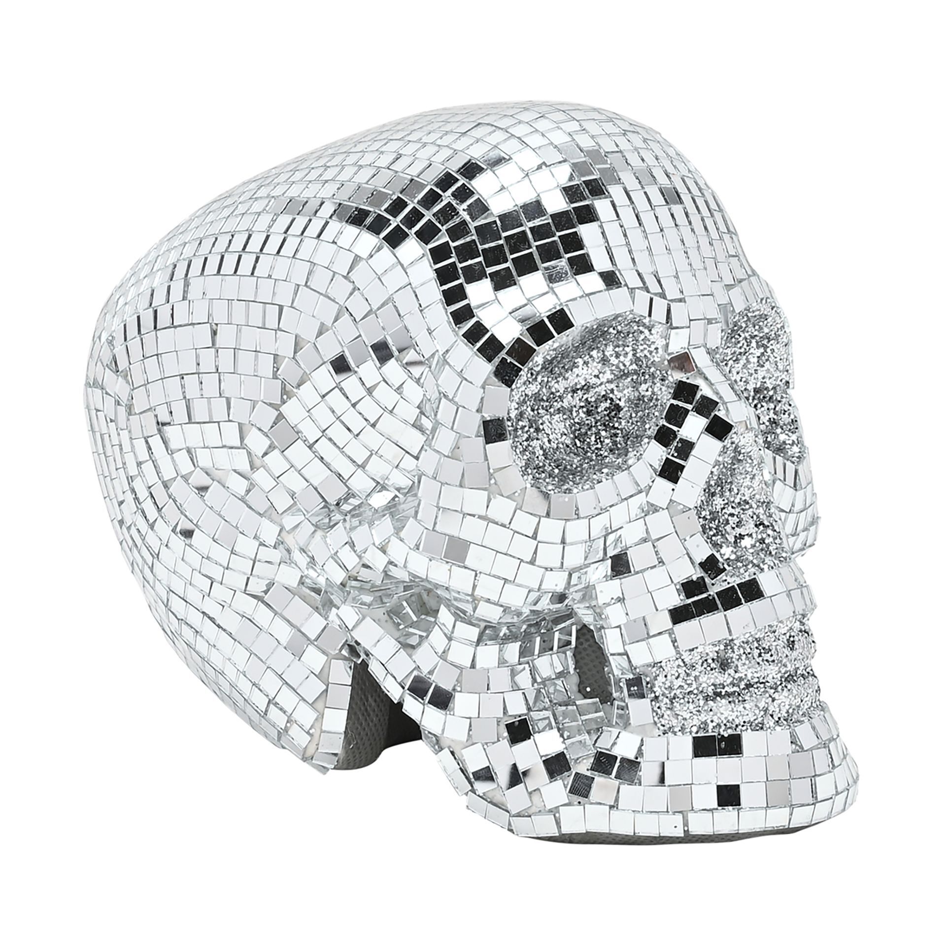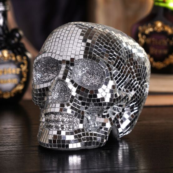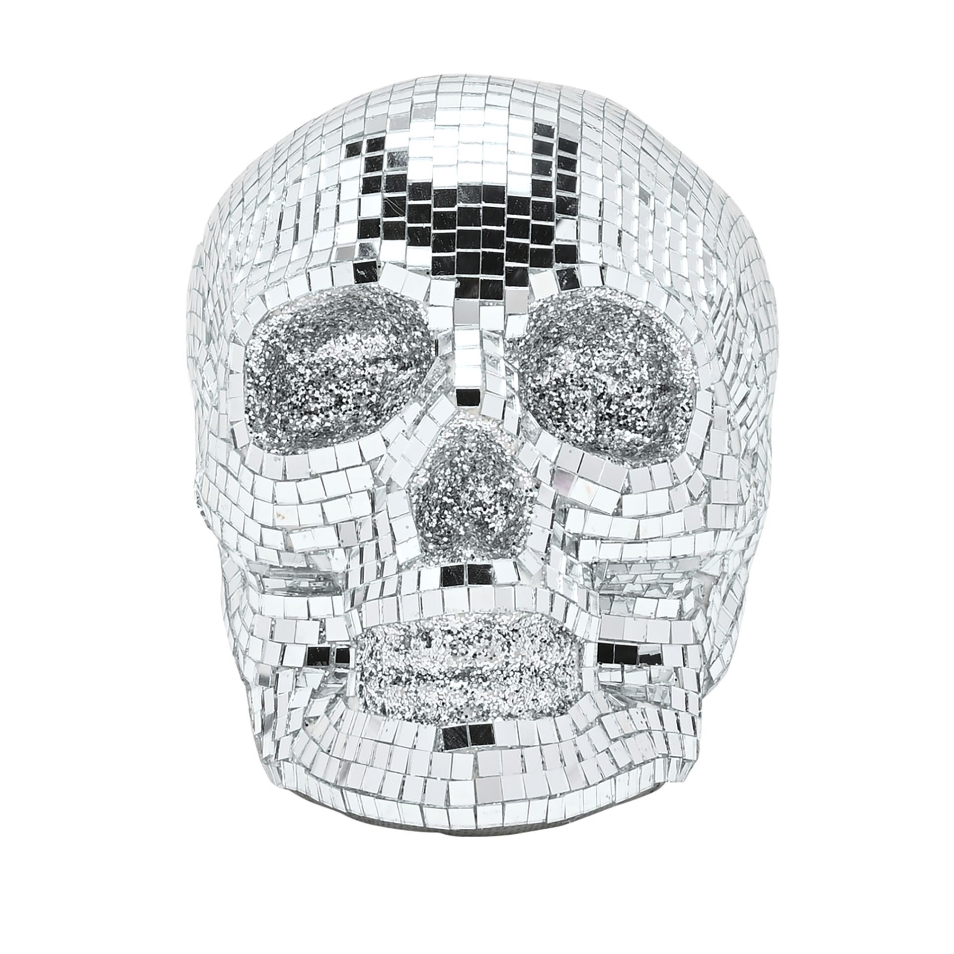 Bring a hint of eerie elegance to any setting with this disco skull ornament, designed to enhance Halloween displays. With its unique character and refined detailing, it serves as an appealing seasonal highlight. The sparkling finish catches and reflects the light beautifully, creating a playful shimmer that brings the piece to life. A truly unique décor accent that adds individuality and style to any Halloween ambience.