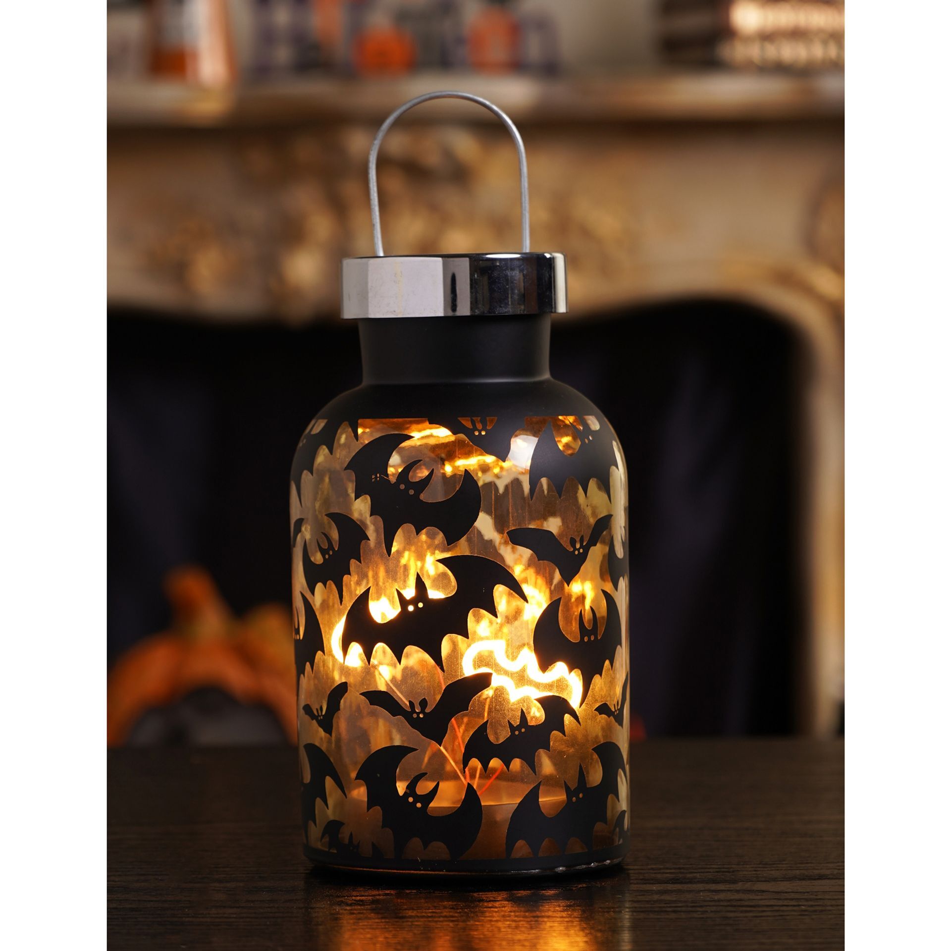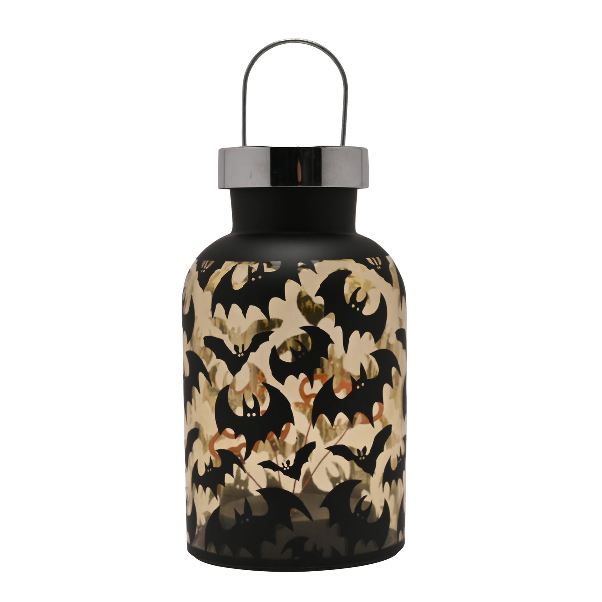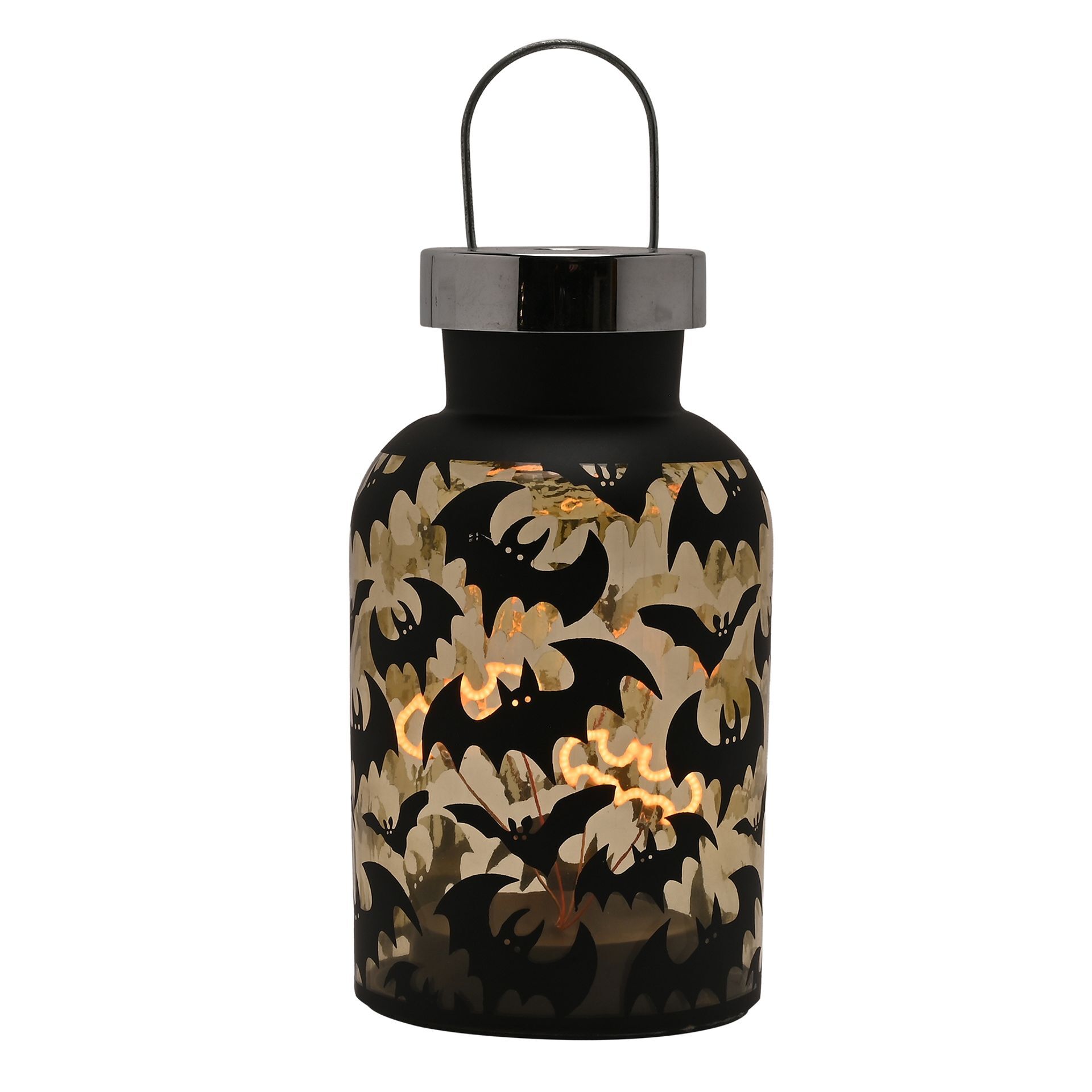 Glass Halloween LED Lantern With Bat Design Neon Light (Includes Try Me Button)