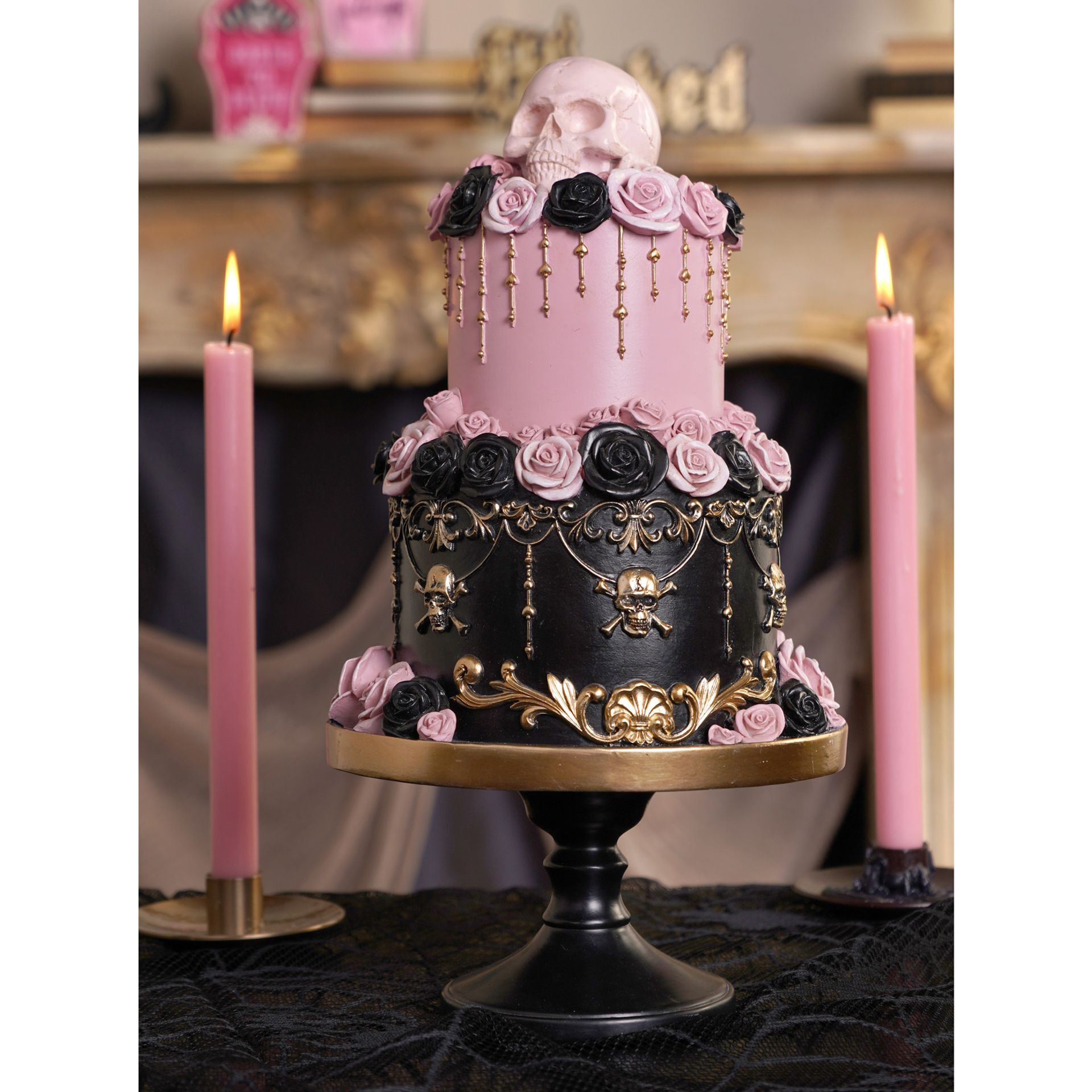 This Halloween three-tier cake ornament offers a stylish nod to the spooky season, blending character with seasonal charm. Its detailed finish and thoughtful styling create a balanced mix of whimsy and subtle spookiness. The pink accents add a fresh, contemporary twist to classic Halloween décor, making it a standout piece. Style alongside other coordinating pink items in the collection to elevate your display with a cohesive seasonal theme.