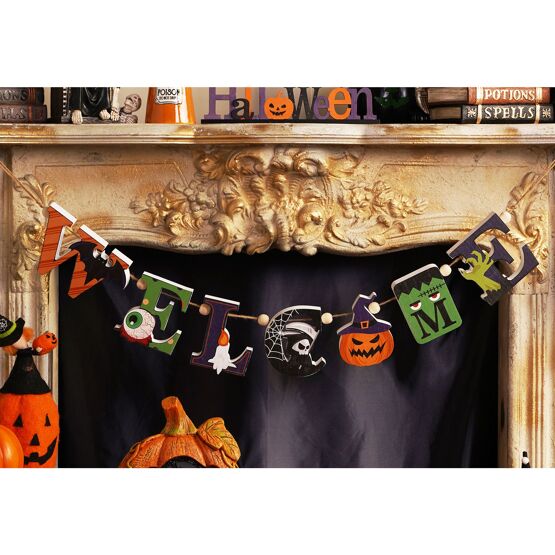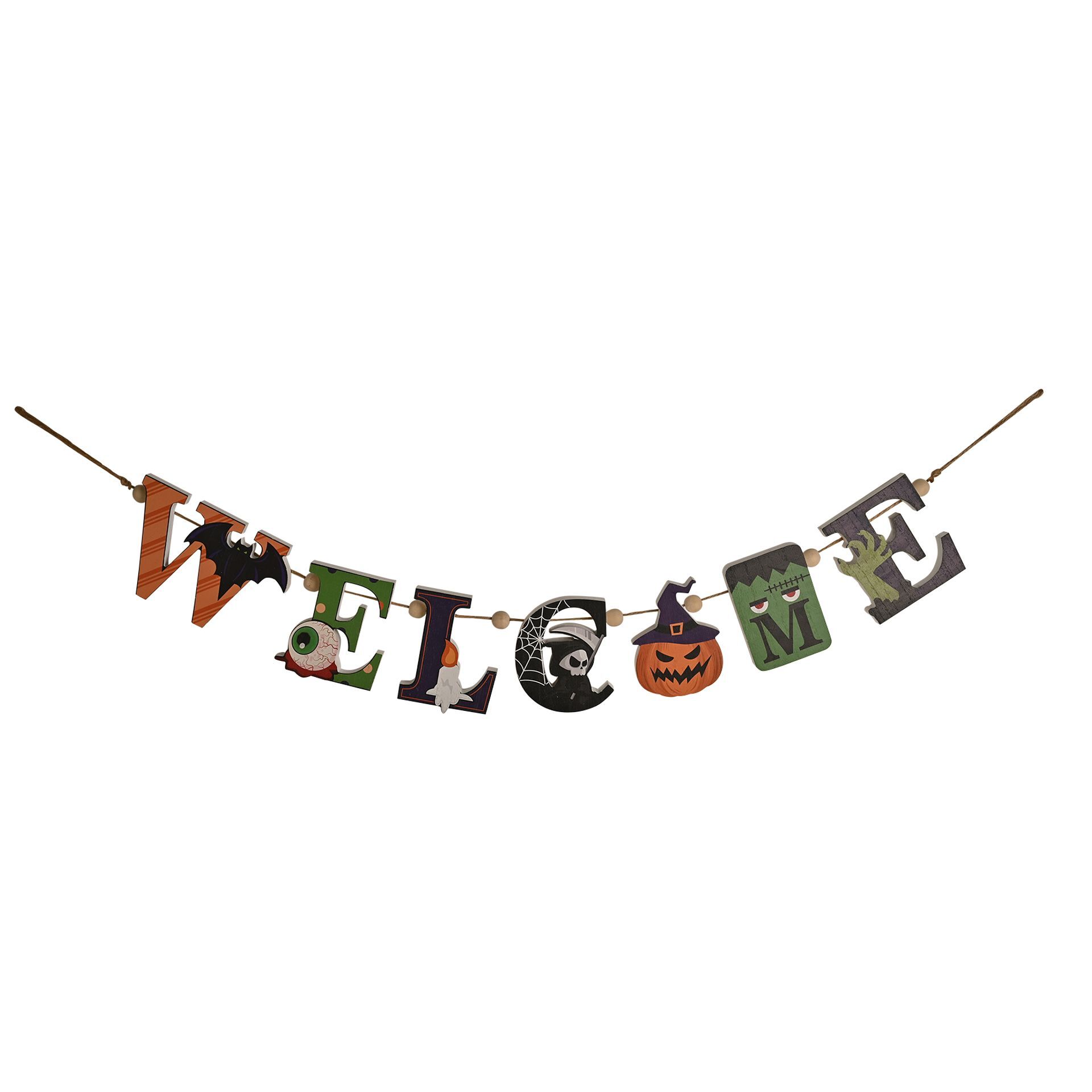 This Halloween hanging welcome sign offers a stylish nod to the spooky season, blending character with subtle seasonal charm. Decorated with playful illustrations of pumpkins, monsters, and bats, it creates a perfectly balanced touch of spookiness. A delightful addition to any Halloween display, it brings warmth, whimsy, and a welcoming seasonal spirit to the home.