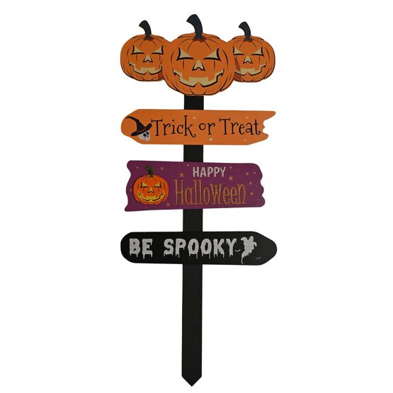 Celebrate the spirit of Halloween with this outdoor MDF stake featuring four directional arrows, styled to capture the essence of the season. Its detailed finish and seasonal accents create a balanced blend of charm and subtle spookiness. Pair with other coordinating outdoor items in the collection to complete the look.