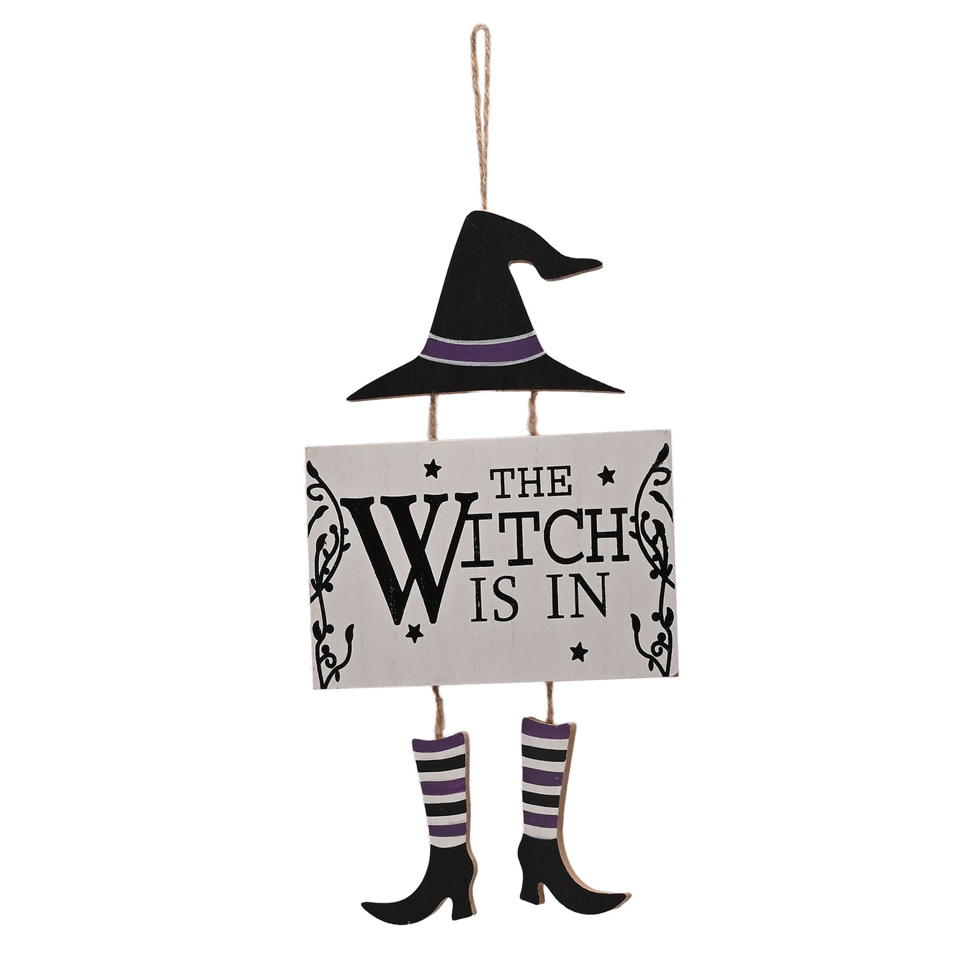 Bring a hint of eerie elegance to any setting with this hanging wall plaque - the witch is in, designed to enhance Halloween displays. The design showcases a harmonious mix of Halloween motifs to help you create a cohesive and inviting Halloween ambience.
