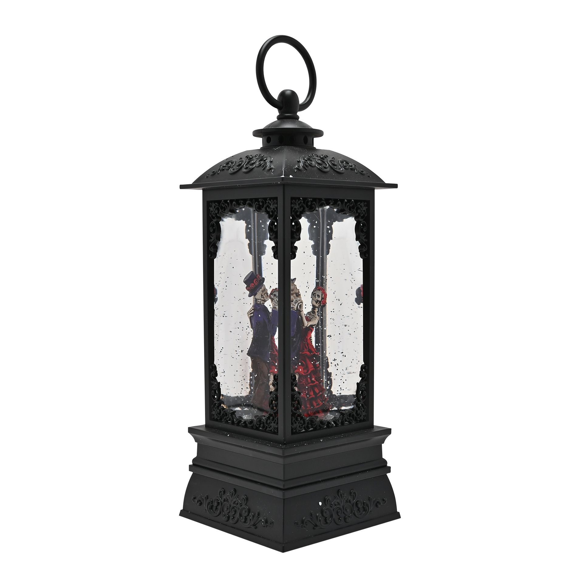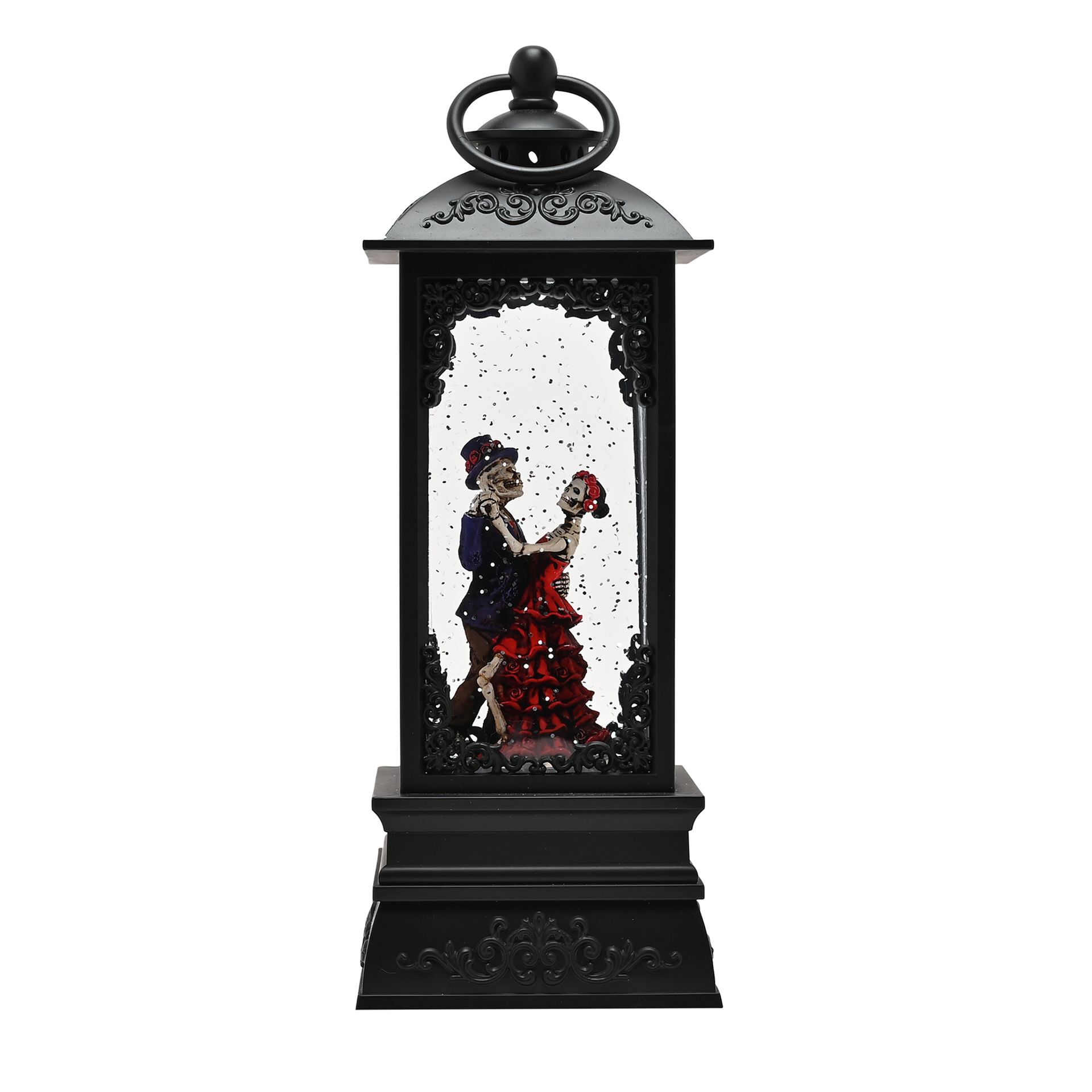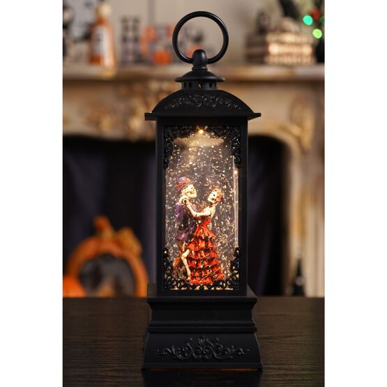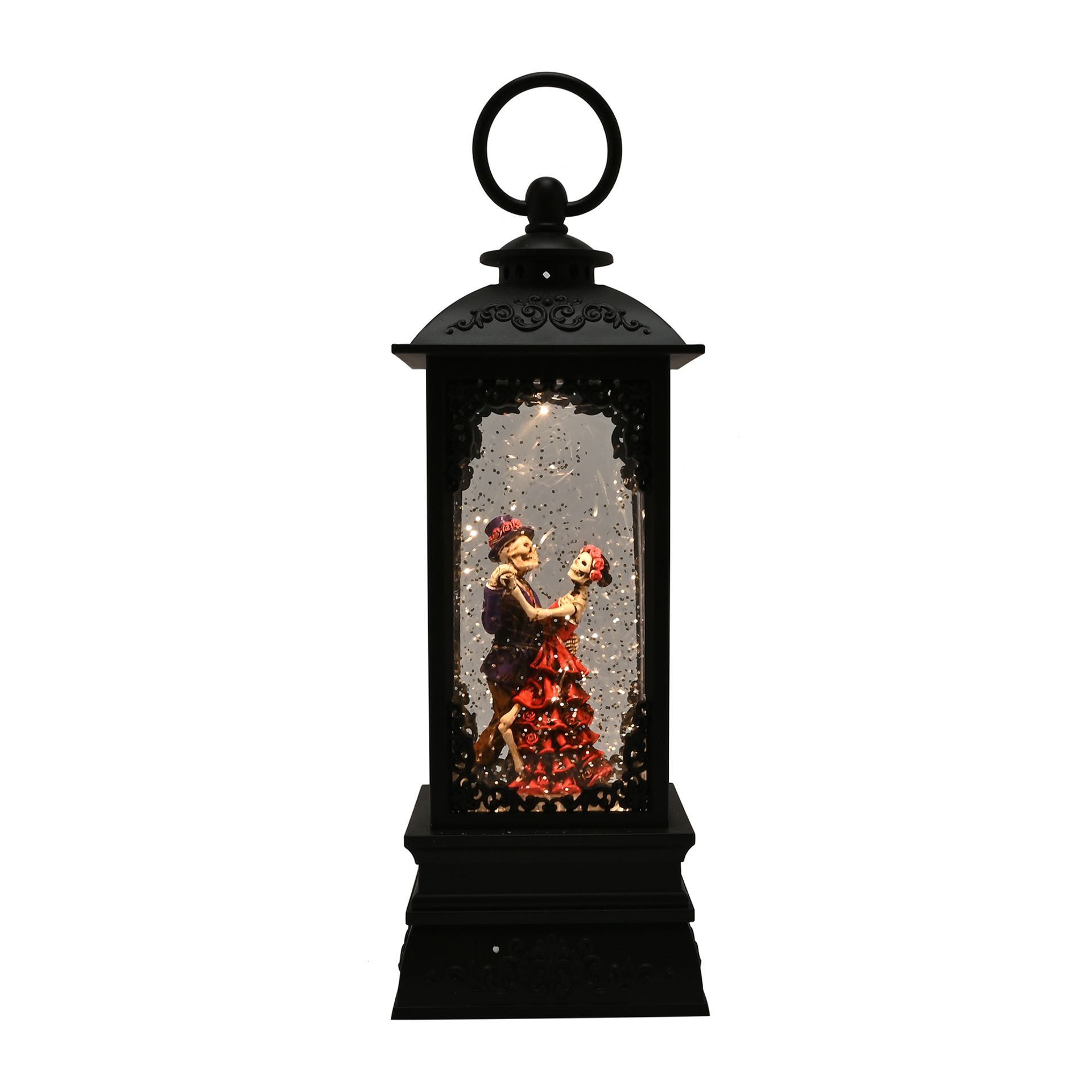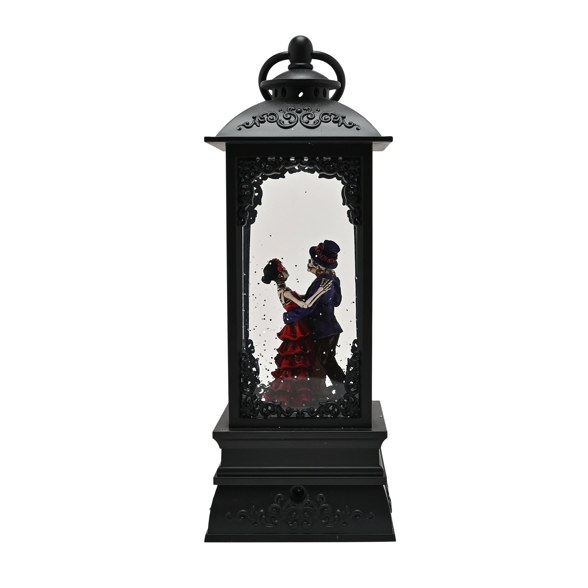 LED Skeleton Couple Light Up Swirling Glitter Lantern With Music 28.5 cm