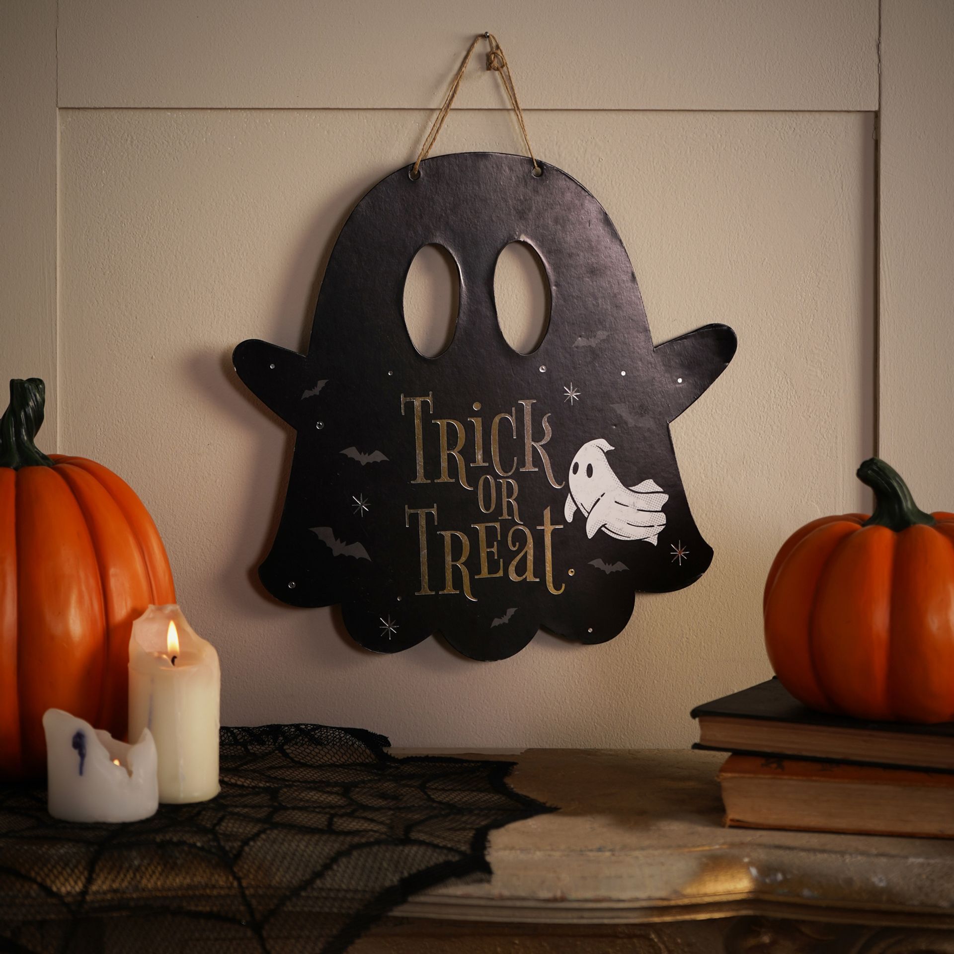 A charming addition to Halloween décor, this Multi 12 two-sided hanging decoration - featuring Trick or Treat on one side and No More Treats on the other - brings a delightful touch of seasonal atmosphere. Measuring 30 x 30cm, it offers a playful way to set the tone for visiting ghosts and ghouls. Its bold lettering and fun Halloween styling make it a standout piece for doors, walls, or party spaces, adding instant festive charm to any display.