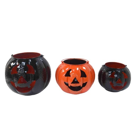 Bring a hint of eerie elegance to any setting with this set of 3 metal pumpkin decorative lanterns 44cm, designed to enhance Halloween displays. Its detailed finish and seasonal styling create a balanced blend of charm and subtle spookiness. Perfect for adding personality to seasonal arrangements throughout the spooky season.