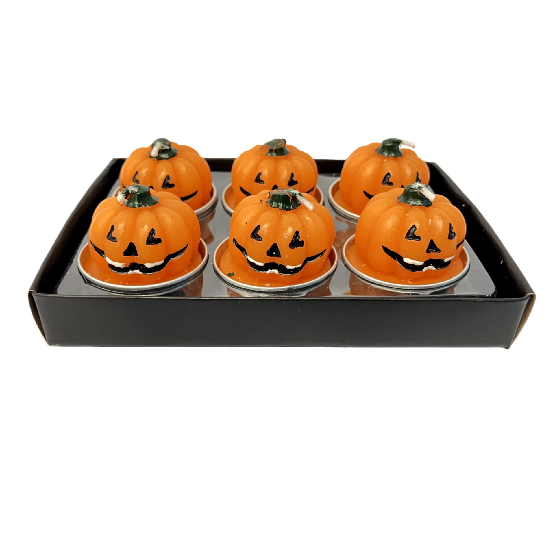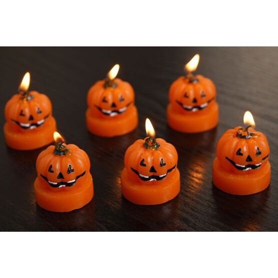 Set of 6 Pumpkin Debossed Smiley Face Tealight Candles