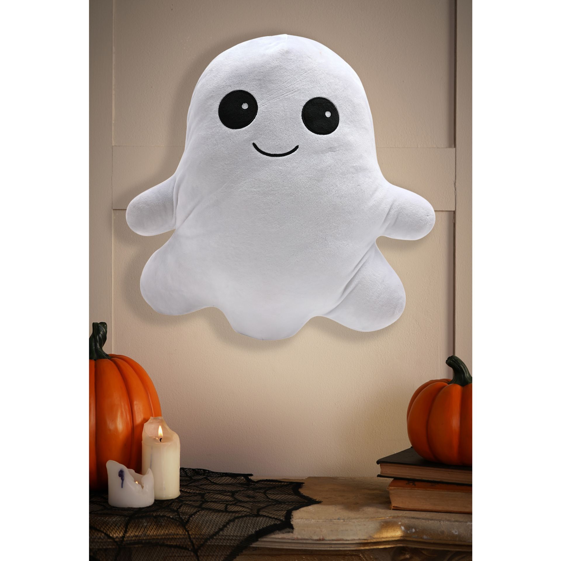 Celebrate the spirit of Halloween with this ghost wall plush, styled to capture the essence of the season. Featuring a friendly smiling ghost design, it brings a soft and playful touch of spooky charm to your wall space. A light-hearted seasonal accent that adds warmth, character, and unmistakable Halloween appeal to any display.