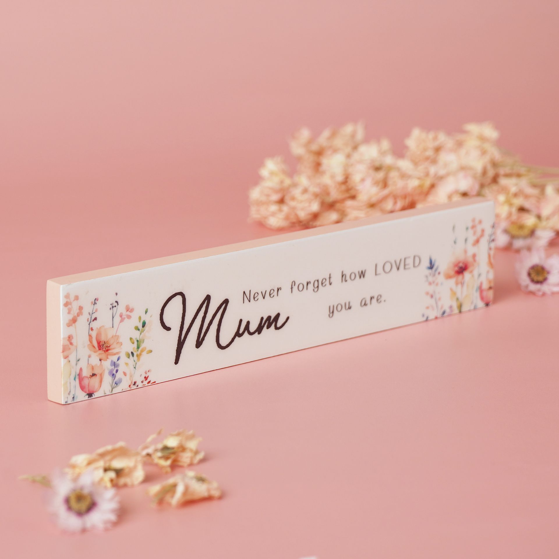 Each slim wooden plaque is decorated with soft pastel blooms and a meaningful phrase, designed to fit easily on shelves, mantelpieces, or walls. Compact and versatile, they work as thoughtful gifts for birthdays, Mother’s Day, or simple thank-you moments.
