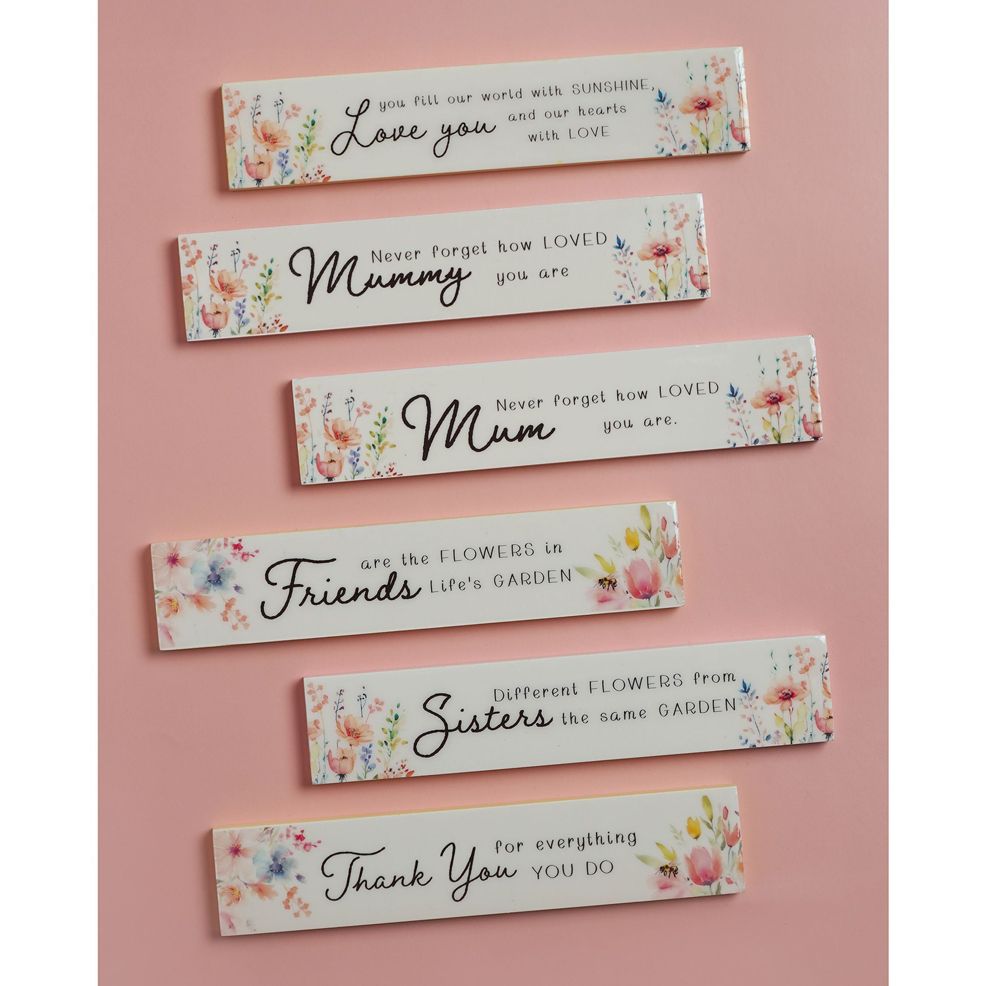 Each slim wooden plaque is decorated with soft pastel blooms and a meaningful phrase, designed to fit easily on shelves, mantelpieces, or walls. Compact and versatile, they work as thoughtful gifts for birthdays, Mother’s Day, or simple thank-you moments.