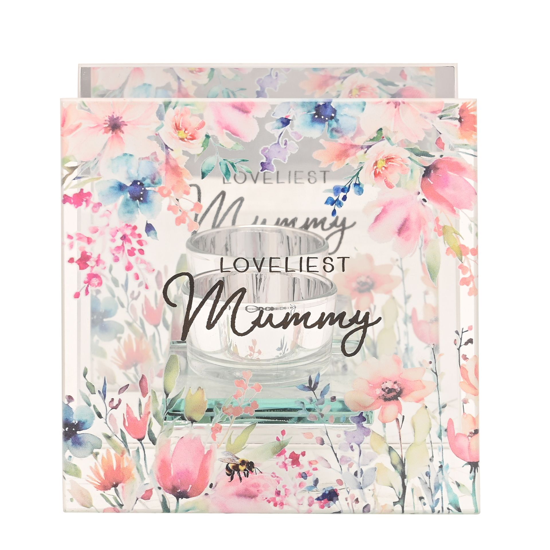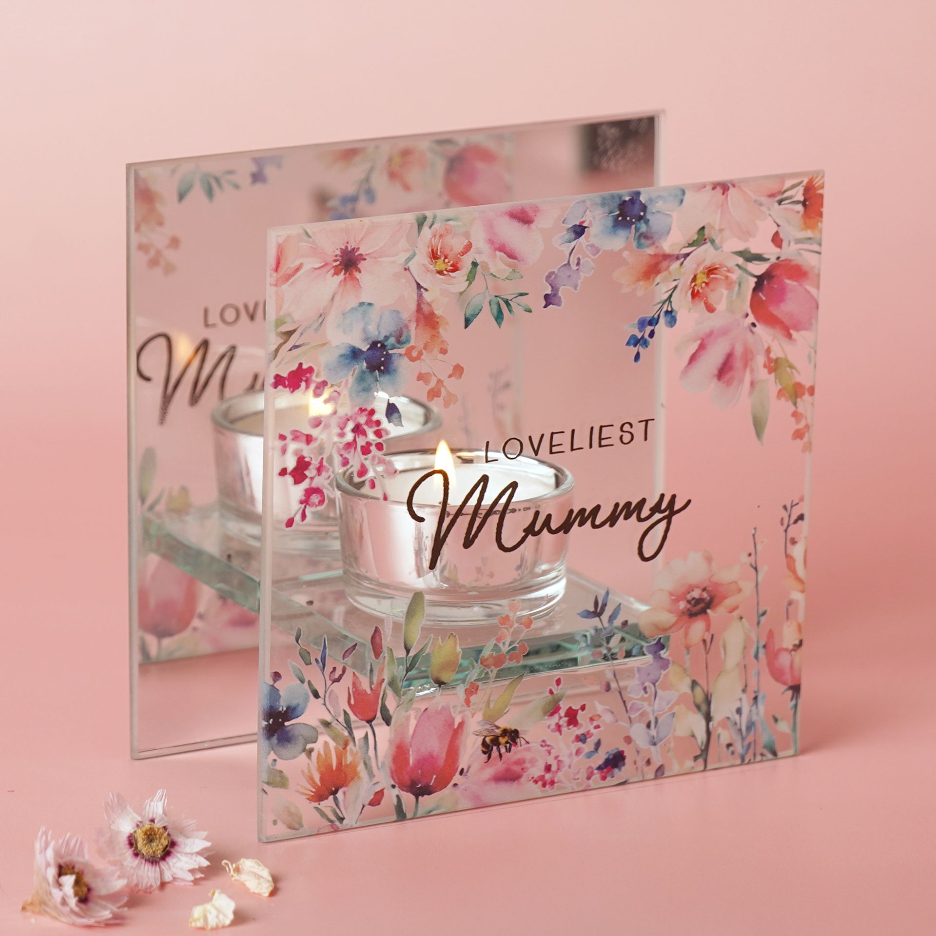 Crafted from glass and decorated with colourful floral detail, it reflects the glow of a tealight to add atmosphere to shelves, tables, or mantels.