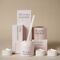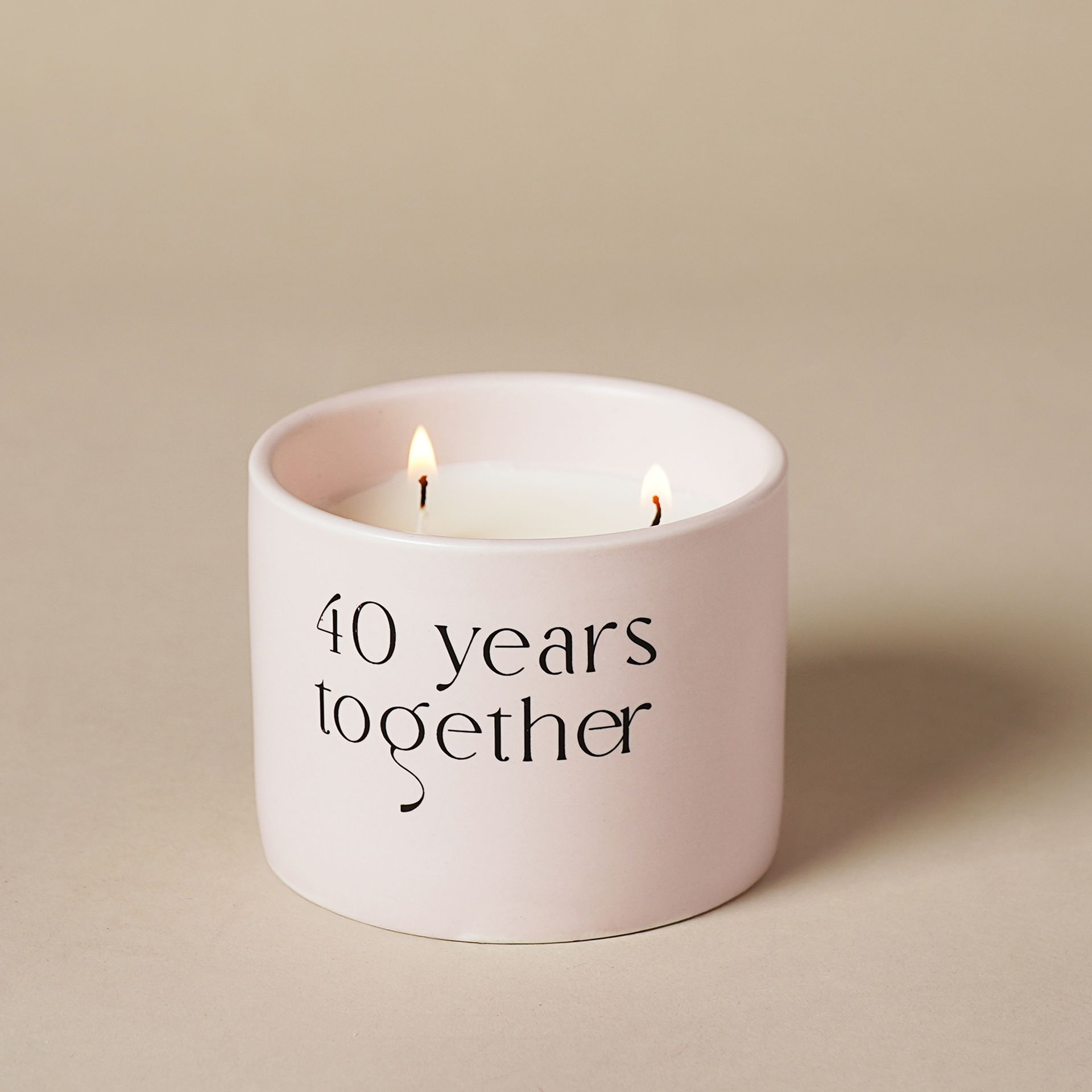 Each candle is housed in a sleek modern ceramic holder featuring an elegant caption, with two wicks that create a warm, even glow. Lightly fragranced with a bergamot and baie rose scent.