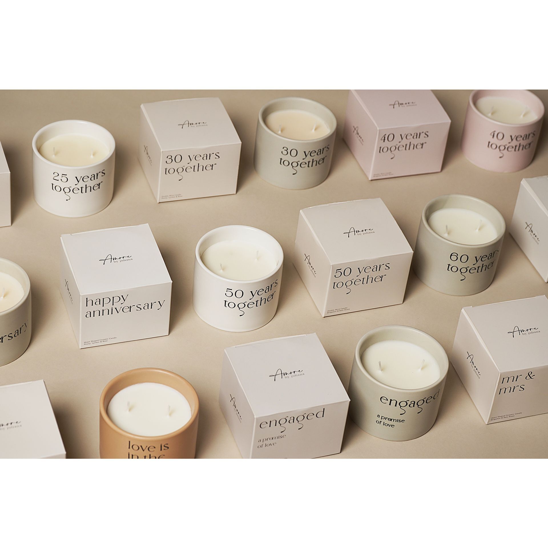The Amore Double Wick Candle is a stylish, gift-ready piece presented in a matching box, making it perfect for weddings, anniversaries, engagements, and other special occasions.